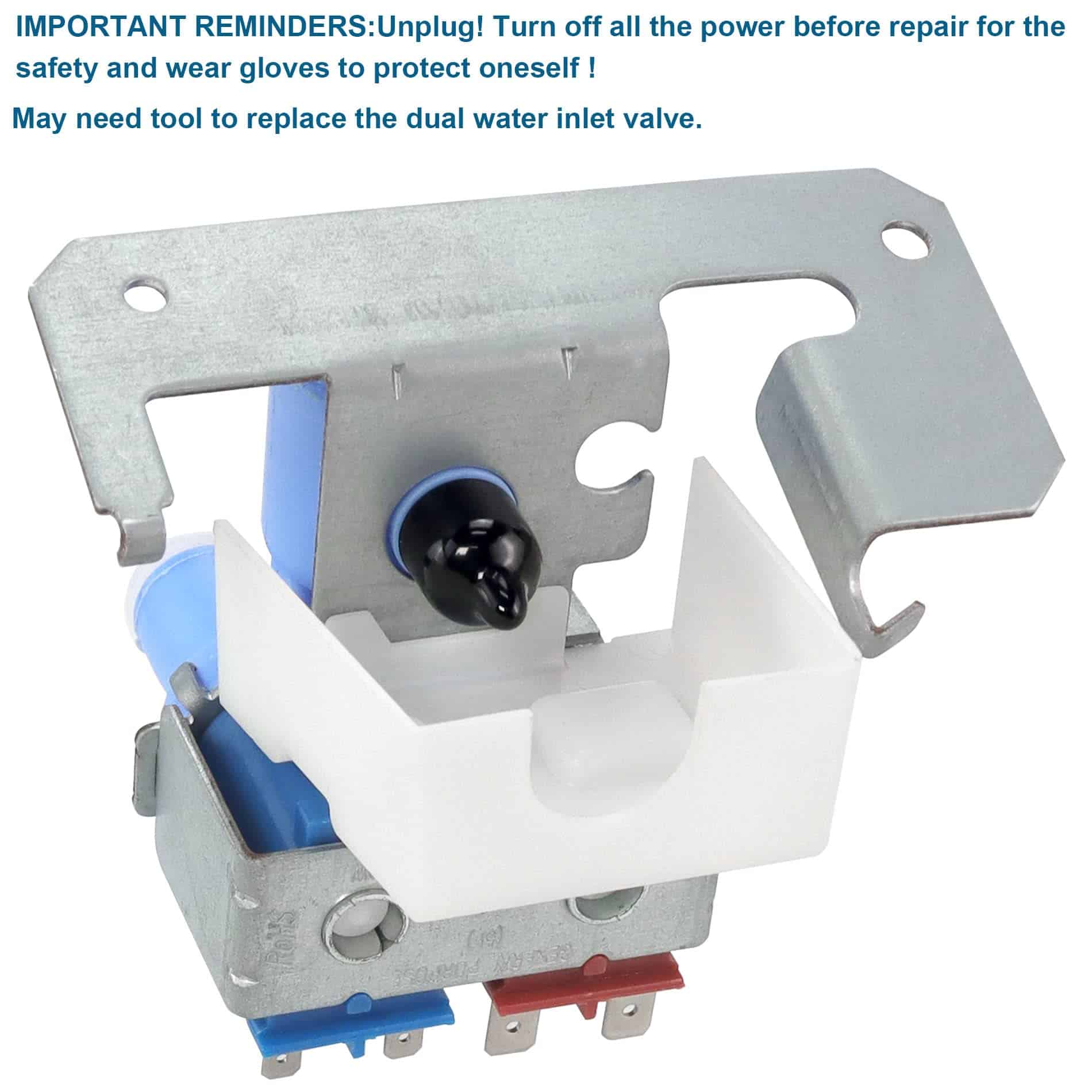 Esta válvula de agua para el refrigerador viene con una entrada de compresión de 1/4″. Esta parte viene con nuevas conexiones rápidas. Para instalar – corta las tuercas de retención de las líneas de agua de plástico existentes y empújalas suavemente hacia la nueva válvula. Para quitar – presiona el anillo en el que entra el tubo; Funciona con modelos: 39330, 39338, 39571, 39671, BCS42ELB, BCS42ELC, BCS42ELD, BCS42ELE, BISB42EKB, BISB42EKC, BISB42ELB, BISB42ELC, BISB42ELD, BISB42ELE, BISW42EKB, BISW42EKC, BISW42ELB, BISW42ELC, etc. 36358072893, 36358075893, 36358077893, 36358475893, 36350221000, 36350222000, 36350227000, 36357552790, 36357552791, 36357557790, 36357557791, 36358042893, 36358042894, 36358042896, 36358042897, 36358047893, etc. CSC20GWSAAD, CSC20GWSAWH, CSC20GWSBAD, CSC20GWSBWH, CSC22GRSAAD, CSC22GRSAWH, CSC22GRSBAD, CSC22GRSBWH, CSC24DRAAD, CSC24DRAWH, CSC24GRSAAD, CSC24GRSAWH, CSC24GRSBAD, CSC24GRSBWH, CSC27HRAAD, CSC27HRAWH, etc. Recordatorios importantes: ¡Desenchufa! ¡Apaga toda la energía antes de reparar por seguridad y usa guantes para protegerte!