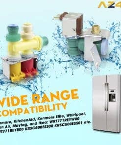 Compatible con varios modelos: La combinación de Válvula de Entrada de Agua del Refrigerador WPW10238100 & WPW10341320 es compatible con la válvula de entrada de agua del refrigerador Kitchenaid, la válvula de entrada de agua de la nevera Kenmore, la válvula de entrada de agua del refrigerador Maytag, la válvula de entrada de agua del refrigerador Whirlpool. También sirve como un excelente sustituto de las válvulas Robertshaw S-86-QC N, invensys s-86-qc n e Invensys N-86-QC. La válvula solenoide de entrada de agua e hielo del refrigerador WPW10238100 reemplaza a W10238100, WPW10238100, W10498992, AP6017532, PS11750831, K-77473 IMV-8100 IMV-1320 K-78032-AM; La válvula de entrada de agua del refrigerador WPW10341320 reemplaza a W10341320, AP6019939, PS11753250, WPW10341320 EAP11753250 Reemplazo perfecto para la válvula de agua del fabricante de hielo Kenmore, modelos de nevera de entrada de válvula Whirlpool GSS30C6EYY01, GSC25C6EYY03, WRS571CIDM02, GSS30C7EYY00, WRS588FIHZ00, WRS571CIDW01, WRS576FIDW02 10651764510, 106 51783412, 10651133213, KRSC503ESS01, KRSC700HBS04, KRSF505ESS00, etc. Alta calidad y fácil instalación: Fabricada con materiales premium, la Válvula de Entrada de Agua WPW10238100 & WPW10341320 ofrece una durabilidad y rendimiento excepcionales. Garantiza un flujo de agua constante, reduciendo el riesgo de fugas y mal funcionamiento. La instalación de la Válvula de Entrada de Agua WPW10238100 & WPW10341320 es sencilla y sin complicaciones. Diseñada para reemplazar esta válvula encaja perfectamente sin necesidad de herramientas especiales. Su diseño fácil de usar garantiza una instalación rápida, ahorrándote tiempo.