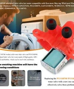 PAQUETE DE GRAN VALOR: Incluye 1 x válvula de entrada de agua fría W10240949 y 1 x válvula de entrada de agua caliente Whirlpool W10240948. Las válvulas de entrada de agua W11168740 y W11168743 están hechas de ABS de alta calidad, metal y goma, que se pueden usar con confianza.