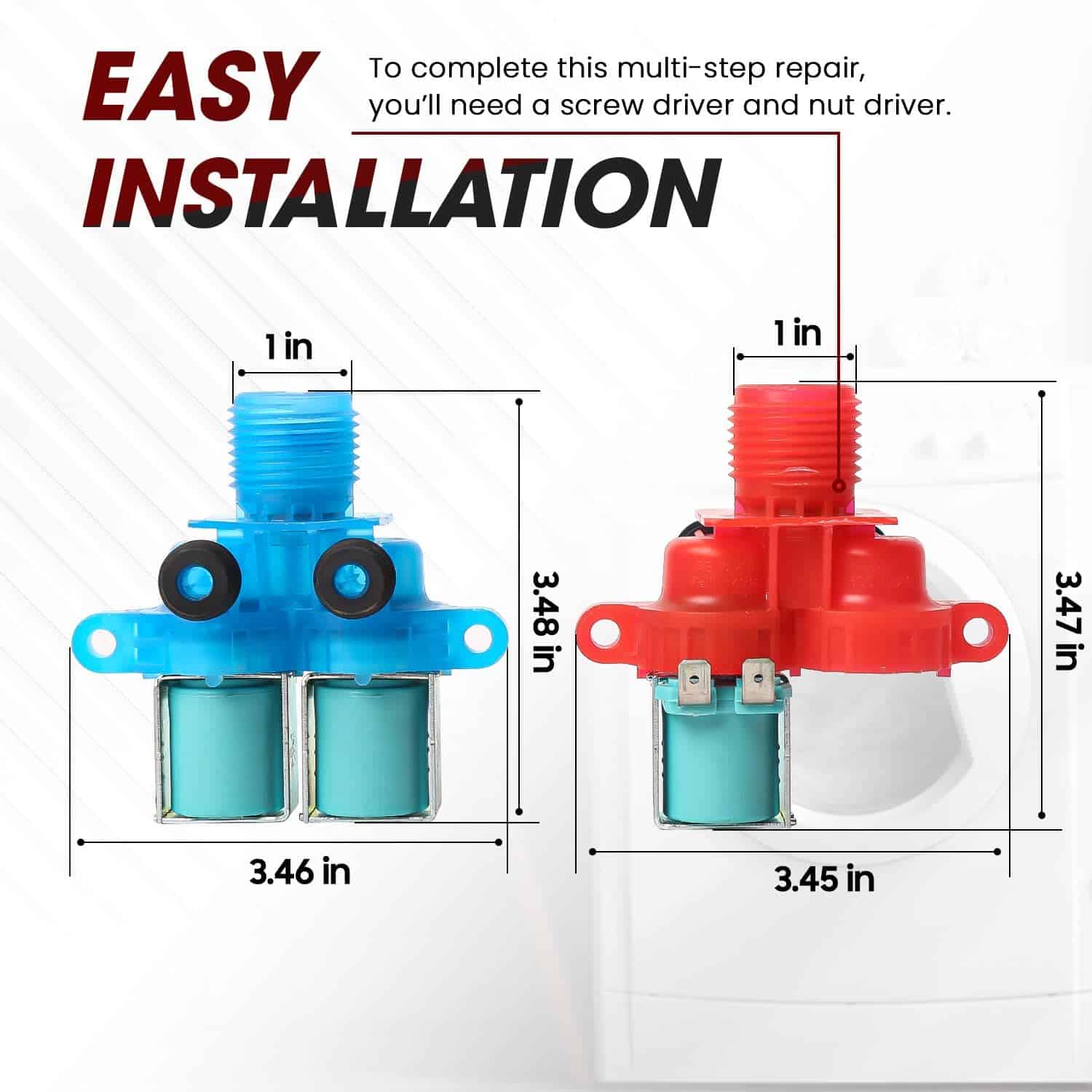 La Válvula de entrada de agua fría W10240949 y la válvula de entrada de agua caliente W10240948 están hechas de material duradero de alta calidad y están bien probadas por el fabricante para garantizar un rendimiento duradero y efectivo. Se conecta a la fuente de agua y a los cables del solenoide de su lavadora, y se asegura de que la tina tenga la cantidad adecuada de agua entrando en ella. La Válvula de entrada de agua fría W10240949 reemplaza a W10921514 W11168740 WPW10240949 4546379 AP6285450 33390069 y la Válvula de entrada de agua caliente W10240948 reemplaza a W10921515 W11168743 WPW10240948 4585634 AP6327638 33390068. Antes de reemplazar la pieza, desconecte la fuente de alimentación y de agua de su lavadora antes de comenzar cualquier reparación. Para completar esta reparación de varios pasos, necesitará un destornillador y un destornillador de tuercas. Es fácil de instalar, ahorra tiempo y esfuerzo, y puede ahorrarle una gran cantidad de costos de mantenimiento. Si por alguna razón no está satisfecho, puede solicitar un reemplazo o un reembolso completo. La satisfacción del cliente es nuestra meta. Si no está satisfecho con el producto, ¡contáctenos! Haremos todo lo posible para resolver el problema.
