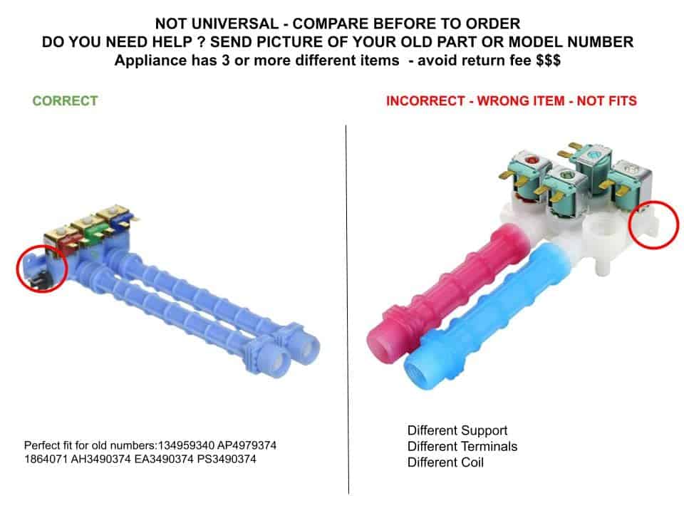 Válvula de Entrada de Agua GLOB PRO SOLUTIONS AP4979374 AH3490374 EAP3490374 PD00000825 CKD4252. Marca registrada en proceso- Ver opciones categorizadas por medidas o conectores, este producto tiene diferentes números de parte. Si necesita una solución más rápida, consulte otras opciones en el check out. La pieza tiene 20 números de parte diferentes como: AP4979374 AH3490374 EAP3490374 PD00000825. Si cuenta con un número de serie antiguo, la nueva pieza tiene un nuevo número y tiene un aspecto diferente, pero se adapta perfectamente a los números de serie antiguos y nuevos. Esta pieza es perfecta, no necesita cables, terminales o pegamento adicionales, fácil de instalar en aproximadamente 15 minutos en promedio. Reemplazo Universal NON OEM con estándares OEM, compatible con varias marcas.