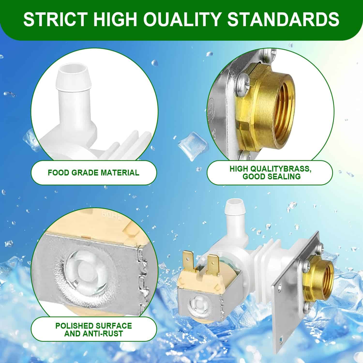 4. Ventaja del producto: La válvula de entrada de agua 040003579 está cuidadosamente diseñada utilizando materiales de alta calidad, equipada con válvulas de control electromagnético. El conector de manguera ha sido especialmente mejorado para evitar separación y fugas. Adoptando interfaz de cobre para prevenir la corrosión y el envejecimiento, con una vida útil más larga y una calidad que supera al OEM.