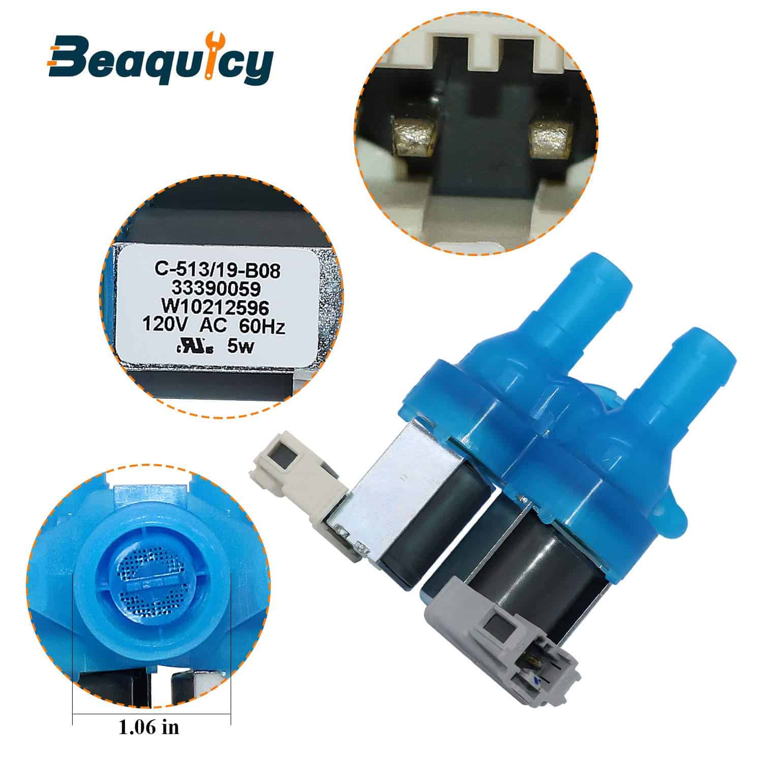 1. – El paquete de reemplazo de la Válvula de Entrada de Agua Fría W10212596 tiene un volumen de 4.3 x 3.15 x 3.1 pulgadas y pesa 6.4 onzas, 120V AC, 60Hz, 5W. La Válvula de Entrada de Agua WPW10212596 controla el flujo de agua hacia la lavadora. La válvula de entrada de agua de la lavadora W10212596 puede resolver los SIGUIENTES PROBLEMAS: La válvula de entrada de agua de la lavadora está dañada y no se puede limpiar. La lavadora no puede llenarse de agua. La válvula de entrada de agua de la lavadora no se detiene. Ruido anormal cuando entra agua. Se desprenden los hilos de la válvula de entrada de agua. Fuga de agua.