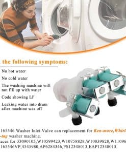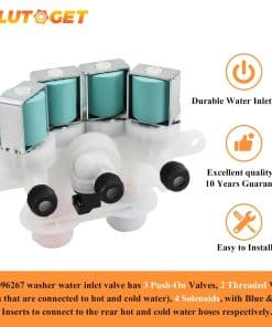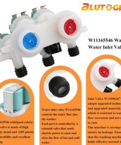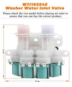 Válvula de entrada de agua para lavadora W11165546 W11096267 genuina OEM con 3 válvulas de presión, 2 válvulas roscadas, 4 solenoides, mangueras en la parte posterior de la lavadora. Cada puerto es controlado por una válvula solenoide que envía energía eléctrica para abrir y cerrar el flujo de agua caliente y fría según la configuración de temperatura de lavado y señales del interruptor de nivel de agua. Fácil de instalar. Paquete incluye 1 x Válvula de entrada de agua para lavadora W11165546 W11096267 genuina OEM. Resuelve problemas como la falta de dispensación de agua con código LF, fuga de agua en el tambor después de apagar la máquina, falta de aceptación de agua caliente en la lavadora, y más. Sustituye a varios modelos y garantiza satisfacción total durante 10 años.