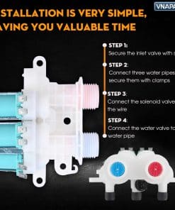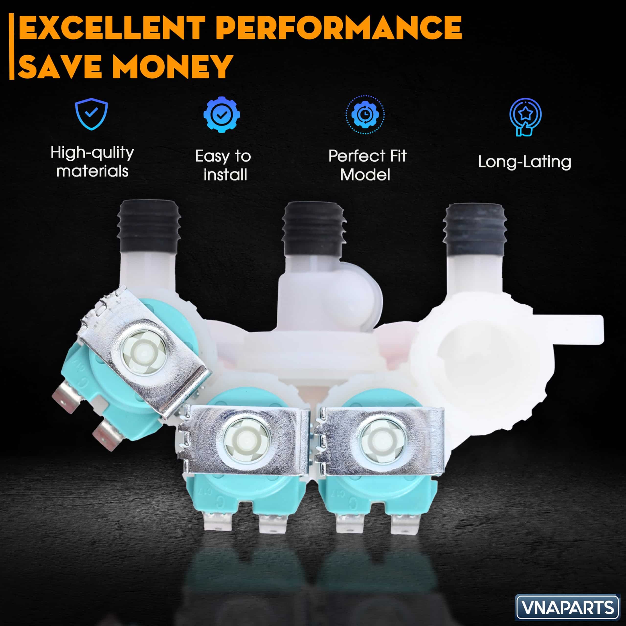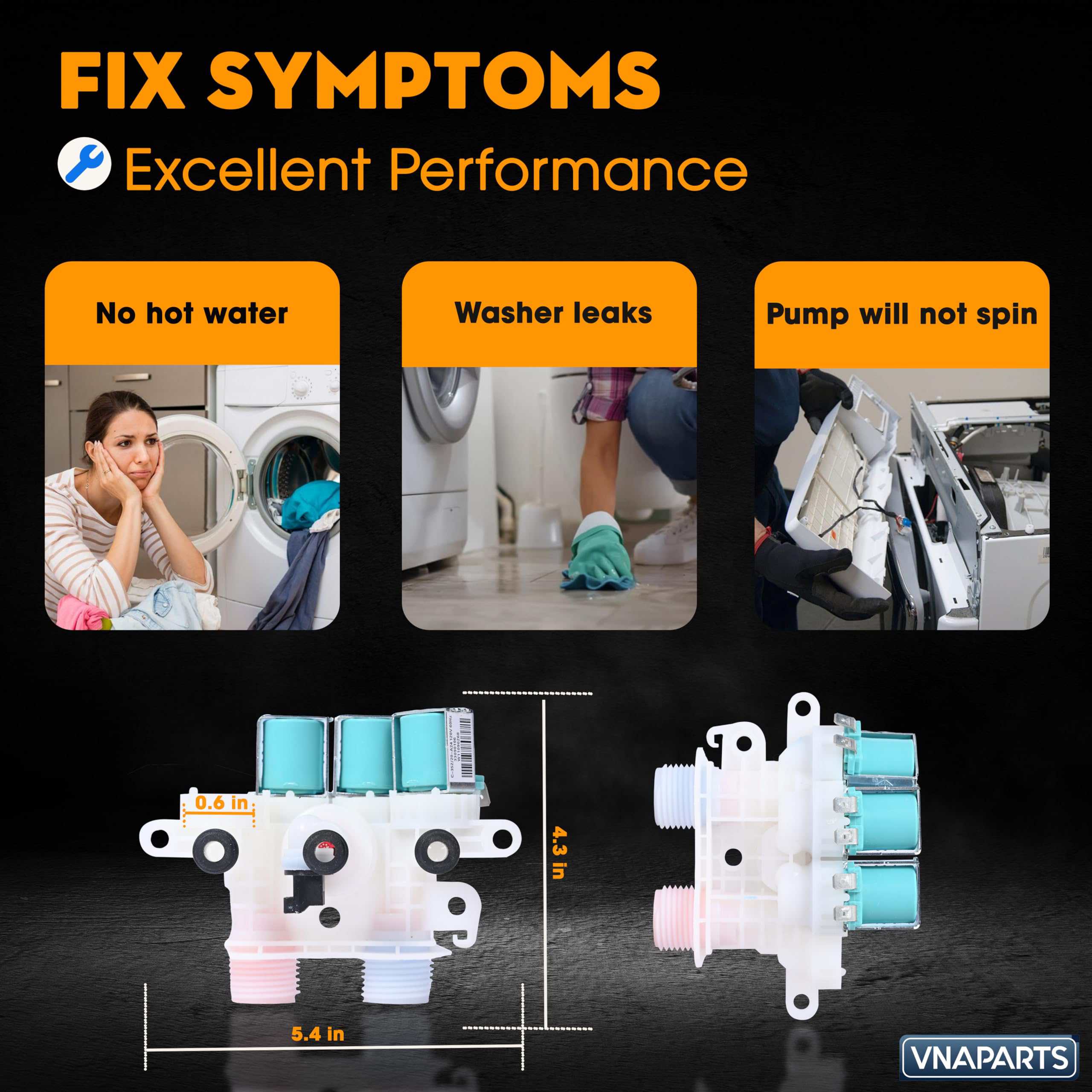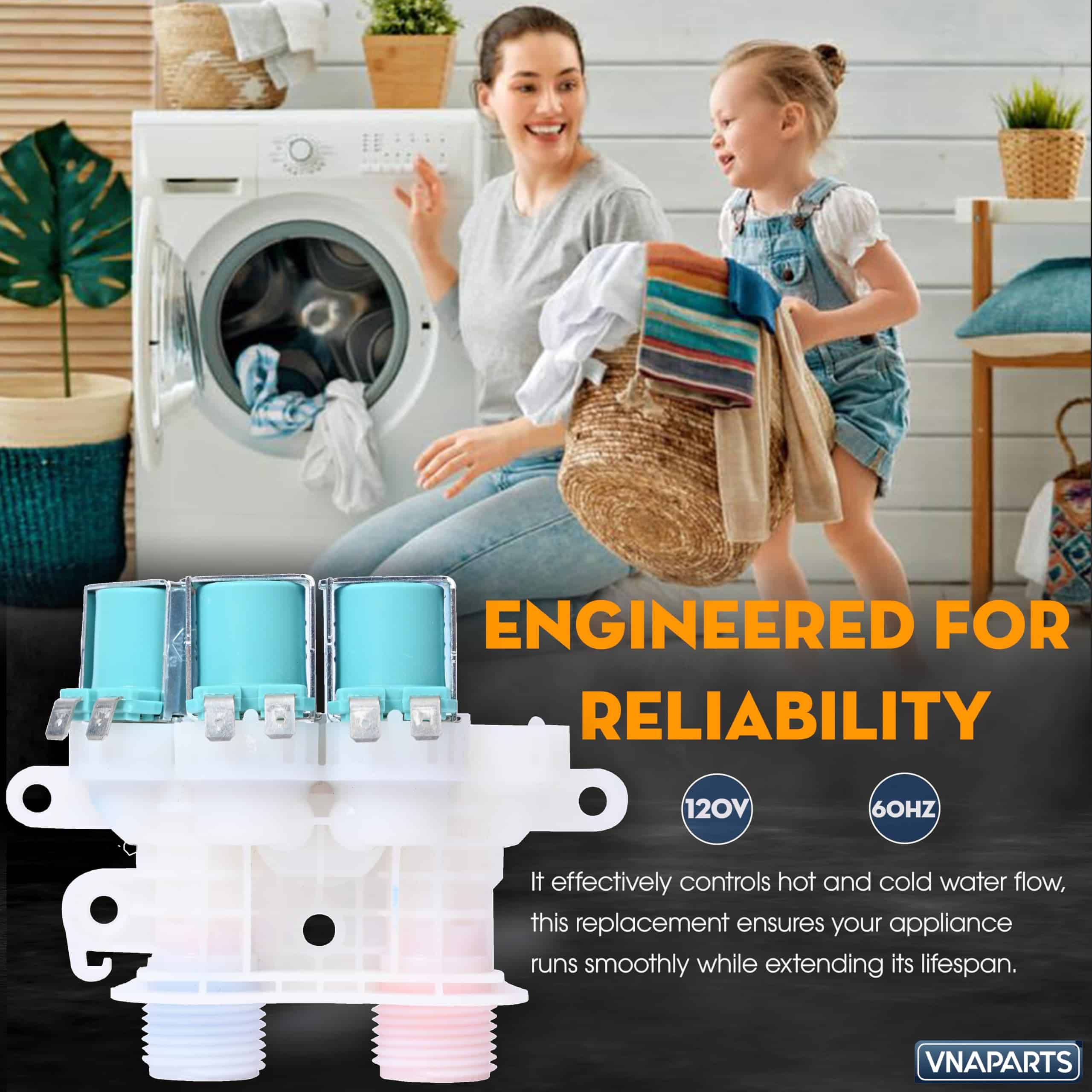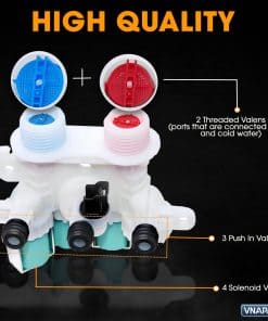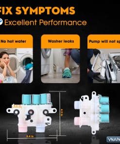 Esta válvula de entrada de agua para lavadora es compatible con Whirlpool, Maytag, Kenmore y algunas lavadoras de carga superior Cabrio. Tiene 2 puertos roscados (rojo y azul) para controlar respectivamente el agua caliente y fría. Compatible con varios modelos de lavadoras Maytag y Whirlpool, como MVW6230HW0, MVWB765FW0, MVWB766FW0, MVWB835DW2, MVWB855DC2, MVWB835DW3, MVWB835DW1, MVWB865GW0, MVWB835DW4, MVWB765FW2, MVWB765FW3, MVWB855DC3.