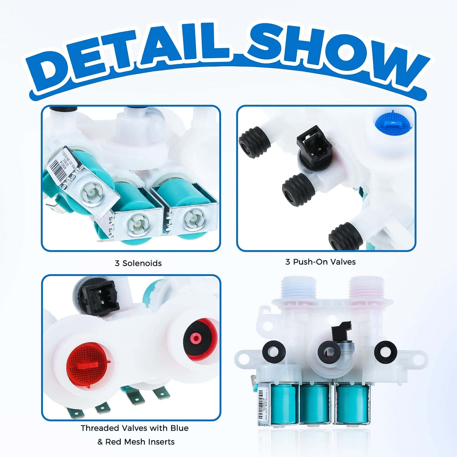 La válvula de entrada de agua W11096268 (W11220230) es compatible con diversos modelos de lavadoras de marcas conocidas como Whirlpool, Maytag, Kenmore, etc. Fabricada con materiales premium para cumplir con los estándares OEM y garantizar una vida útil prolongada. Se recomienda reemplazar la válvula de entrada de agua en caso de códigos de error, fugas, problemas para añadir agua caliente/fría, drenaje inadecuado, etc. Fácil instalación, se puede buscar en YouTube el procedimiento paso a paso. Se recomienda desconectar la fuente de alimentación y agua antes de la instalación. Para consultas sobre el producto, contáctanos y te responderemos a la brevedad posible.