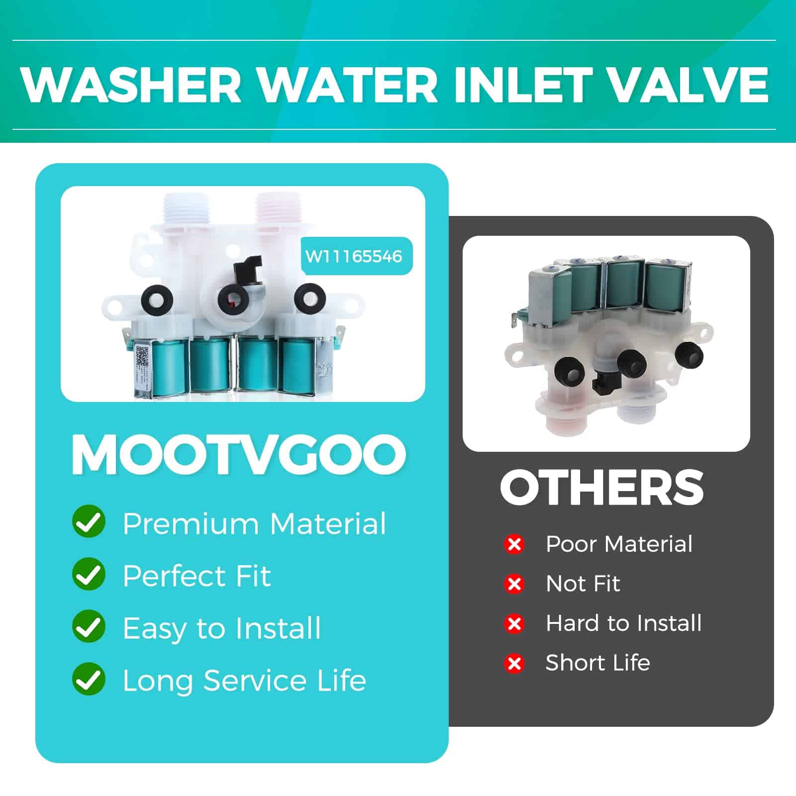 Válvula de entrada de agua para lavadora MOOTVGOO W11165546
