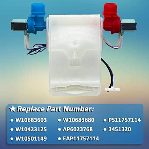Válvula de entrada de agua para lavadora W10683603 whirlpool – Garantía de 1 año. Repara principalmente los siguientes síntomas: No llena con agua. No deja de llenarse con agua. Agua fría y caliente desbalanceada. Fuga de agua. Información del producto: Modelo: W10683603. Incluye: — 1 x Válvula de entrada de agua para lavadora W10683603. Números de parte de reemplazo: W10683603, W10423125, W10501149, W10683680, 3451320, AP6023768, PS11757114, EAP11757114, etc. Compatible con los modelos: ATW4675YQ0, ATW4675YQ1, ATW4676BQ0, ATW4676BQ1; NTW4600YQ0, NTW4600YQ1, NTW4601BQ1, NTW4610YQ0, NTW4611BQ0, NTW4611BQ1, NTW4630YQ0, NTW4631BQ0, NTW4631BQ1, NTW4650YQ0,NTW4651BQ0, NTW4651BQ1, NTW4700YQ0, NTW4700YQ1, NTW4701BQ0, NTW4701BQ1, NTW4750BQ0, NTW4750BQ1, NTW4750YQ0, NTW4750YQ1; CAW9244BW0, CAW12444BW0, CAW12444DW1, CAW12444XW2, CAW9244DW0, CAW9244DW1, CAW9244XQ4, CAW9444BW0, CAW9444DW0, CAW9444DW1; ITW4600YQ0, ITW4600YQ1, ITW4671DQ0, ITW4700YQ0, ITW4700YQ1, ITW4771DQ0, ITW4971DQ0; 11022102312, 1105072011, 1105072012, 11020022013, 11020022014, 11020102310, 11020102311, 11020102312, 11020112310, 1102011231111021102013, 11021182013, 11021252112, 11021292013, 11021302013, 11021352112, 11021392013, 11021492310, 11021492311, 11022102310, 11022102311. Nota importante: Si no está seguro de si esta válvula de entrada de agua coincide con el modelo de su lavadora, contáctenos de inmediato y le daremos una respuesta definitiva. Los nombres de marcas o modelos mencionados en este producto solo se utilizan para demostrar compatibilidad. Servicio postventa de alta calidad: Si tiene alguna pregunta, contáctenos de inmediato, le daremos una respuesta satisfactoria dentro de las 12 horas. Nuestro objetivo es proporcionar a los clientes productos de alta calidad y un servicio postventa profesional.