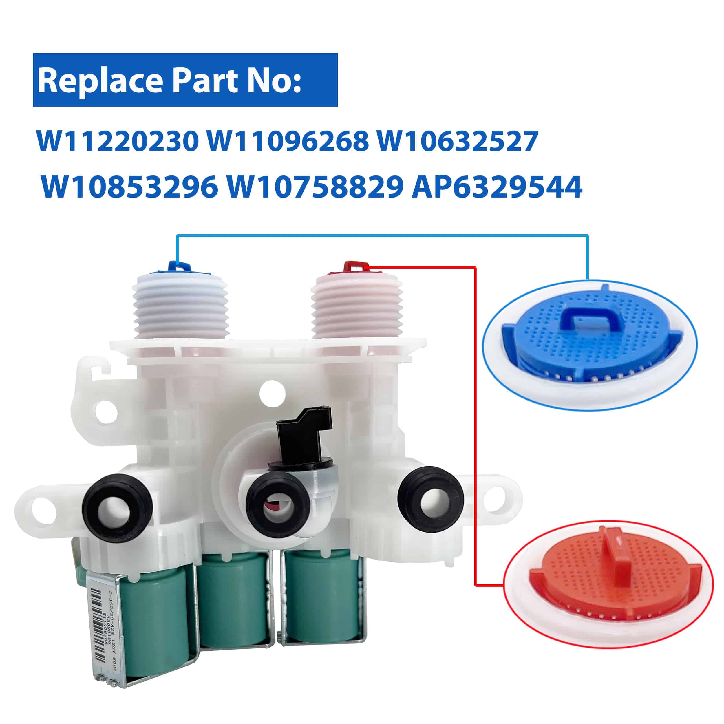 Especificaciones: 120V 60Hz. Solucionando problemas de fugas, falta de agua caliente, llenado deficiente, y problemas de drenaje. Válvula de Entrada de Agua Nueva compatible con diferentes modelos de lavadoras Whirlpool, Kenmore y Maytag. ¡Garantía de reembolso completo o reemplazo nuevo garantizado si no funciona, viene con garantía de un año a partir de la fecha de pedido!