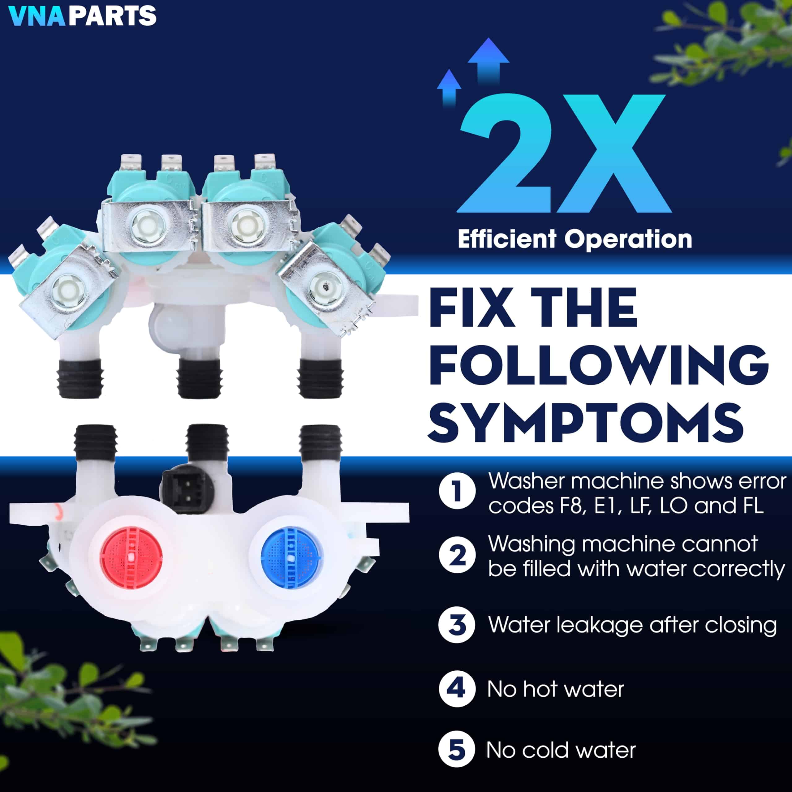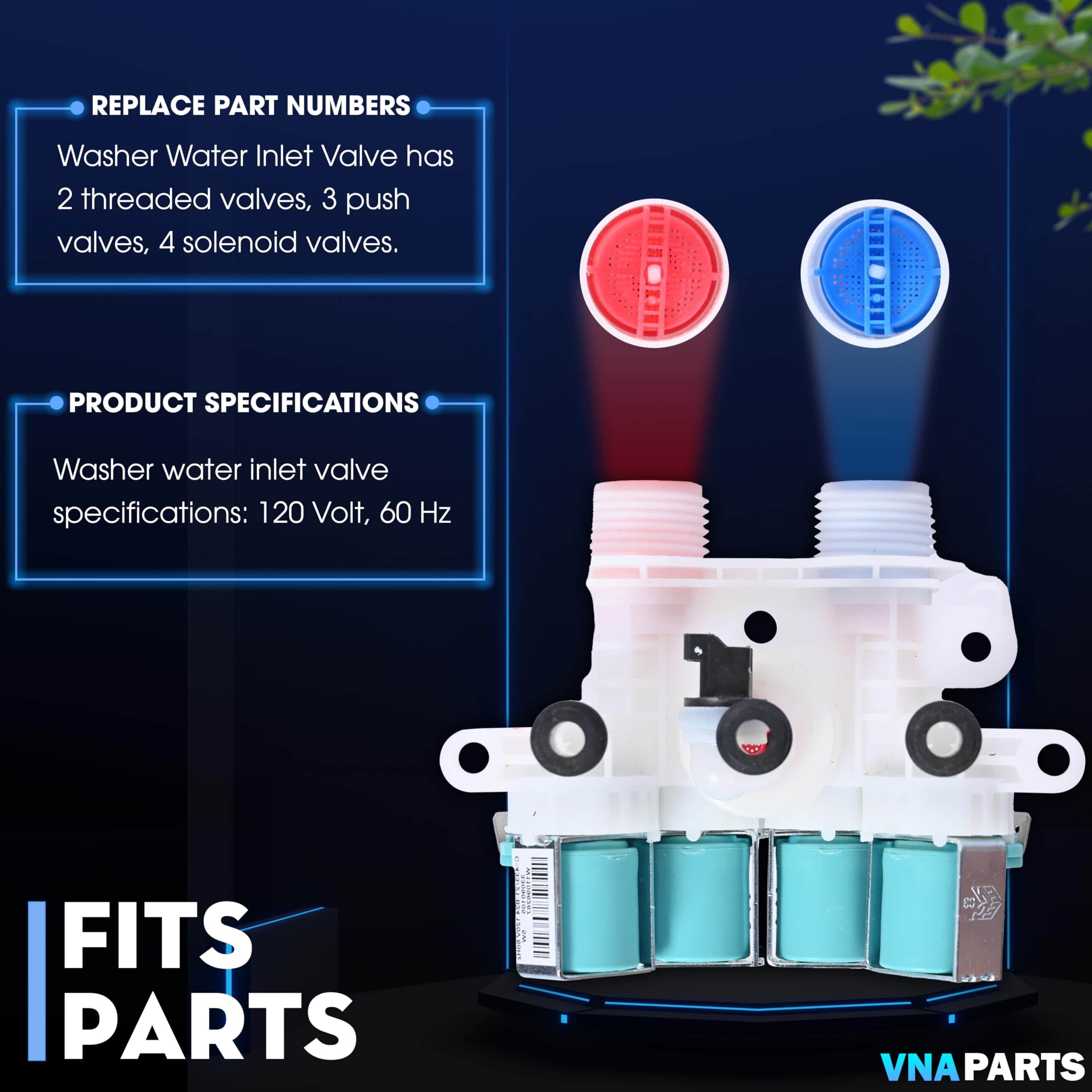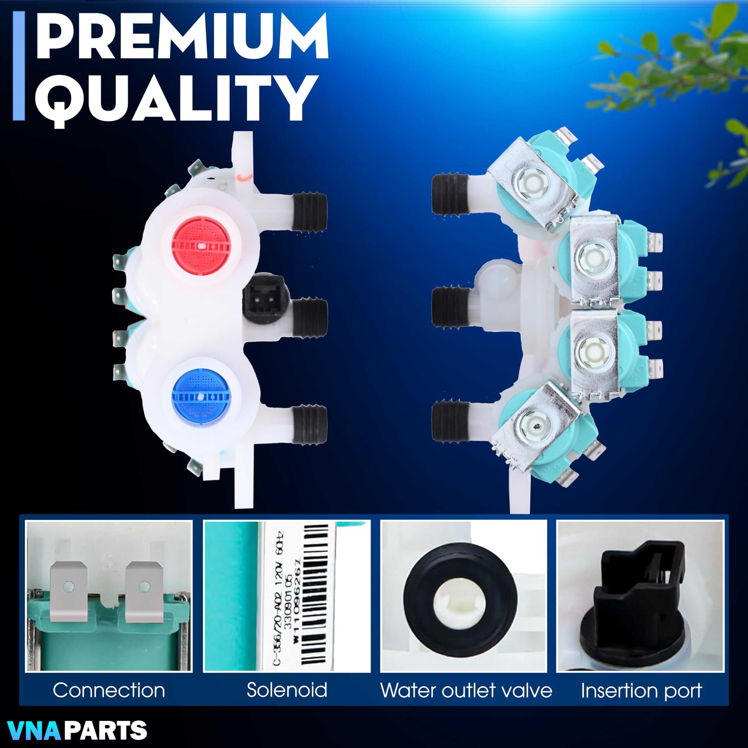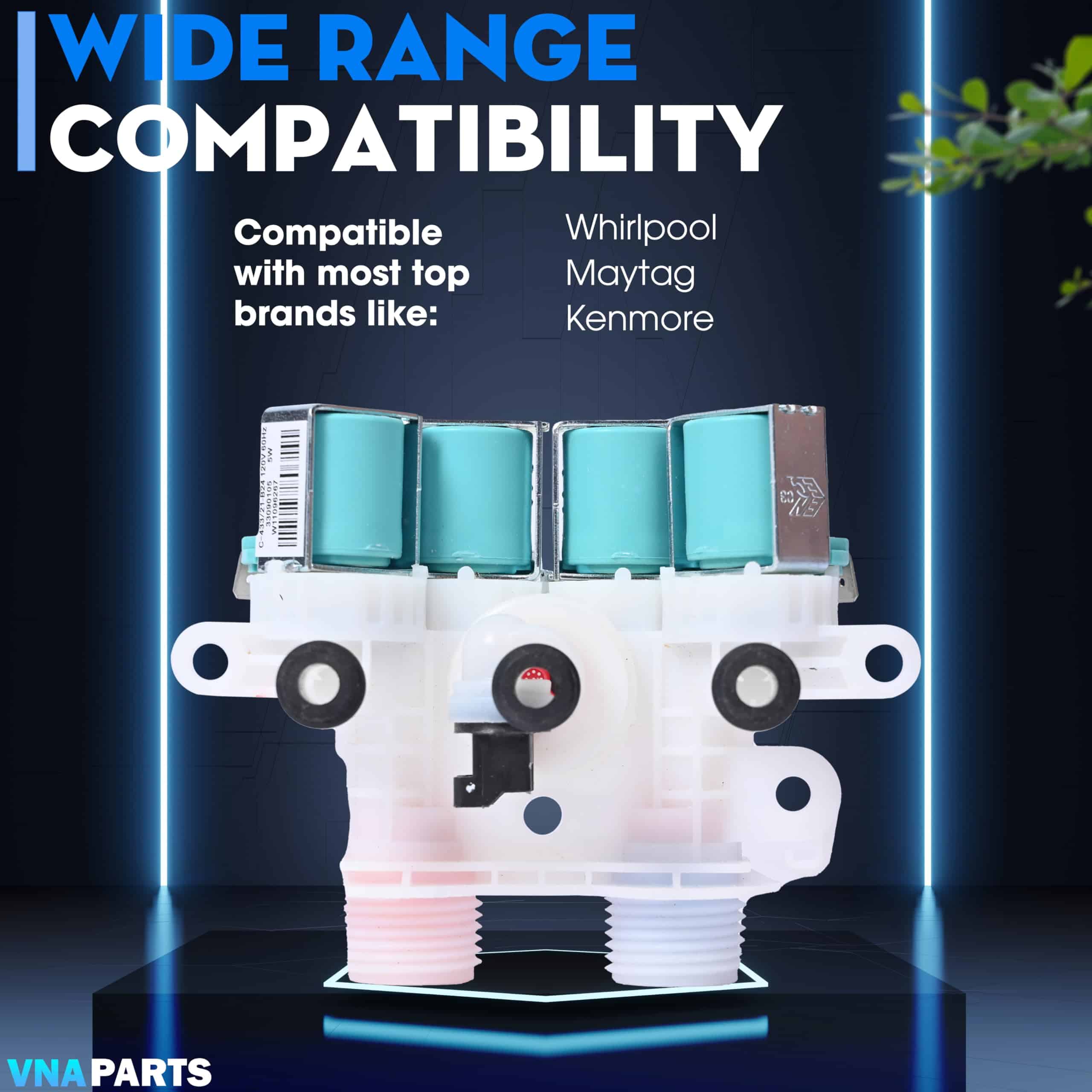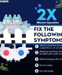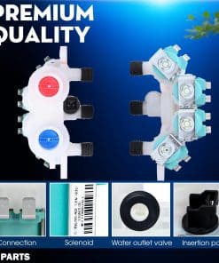 La Válvula de Entrada de Agua w11165546 es una pieza de reemplazo directo para varias marcas de lavadoras. Compatible con válvula de entrada de agua Cabrio de Whirlpool, válvula de entrada de agua de lavadora Kenmore, y modelos de válvula de entrada de agua para Whirlpool. Reemplaza números de parte W10599423, W10758828, W11096267, W11165546VP, y más. Diseñado como reemplazo para la válvula de entrada de agua de la lavadora Maytag, esta pieza se ajusta a modelos de lavadoras Maytag Bravos XL, Maytag MVWB765FW y piezas de repuesto para lavadoras Maytag Bravos XL. Si su lavadora está goteando o no se llena correctamente, esta válvula de entrada restaura el flujo de agua adecuado.