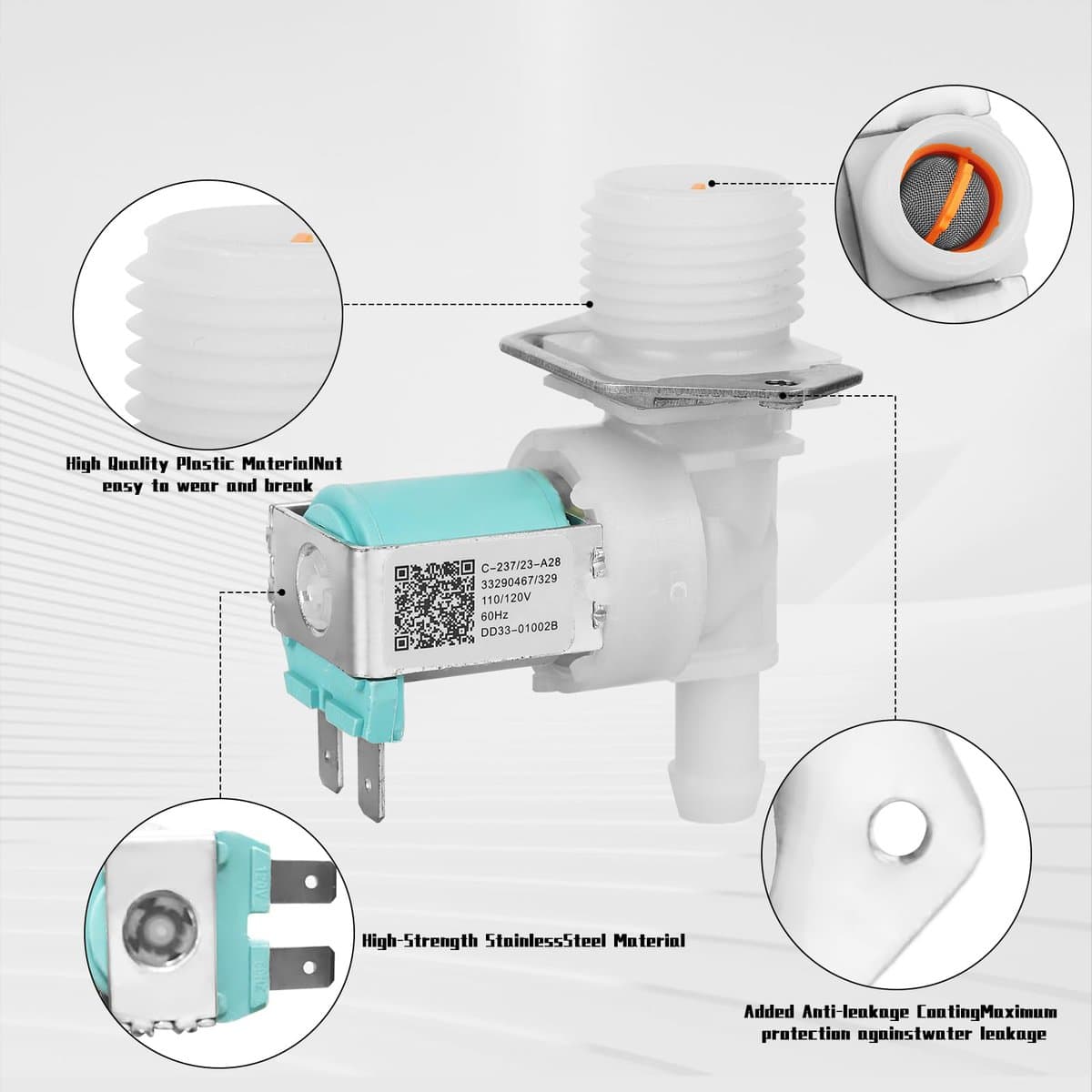 La válvula de entrada de agua DD33-01002B ayuda a controlar el flujo de agua en el lavavajillas. Esta parte con dos pantallas de filtro de válvula de entrada de agua controla el flujo de agua en el lavavajillas mientras filtra las impurezas en el agua. La válvula de entrada de agua DD33-01002B puede solucionar problemas como fugas, flujo de agua irregular, no se detiene al llenarse de agua o no se llena en absoluto y problemas de temperatura. La válvula de entrada de agua DD33-01002B está hecha de plástico ABS de alta calidad y metal de acero inoxidable. Ha pasado por rigurosas pruebas del fabricante y es una nueva pieza de repuesto GENUINA. La válvula de entrada de agua para lavavajillas DD33-01002B ha sido diseñada precisamente para garantizar un control preciso del flujo de agua dentro del lavavajillas. Su fiabilidad y estabilidad garantizan un funcionamiento suave del ciclo de lavado, tanto durante el uso normal como bajo cargas pesadas.