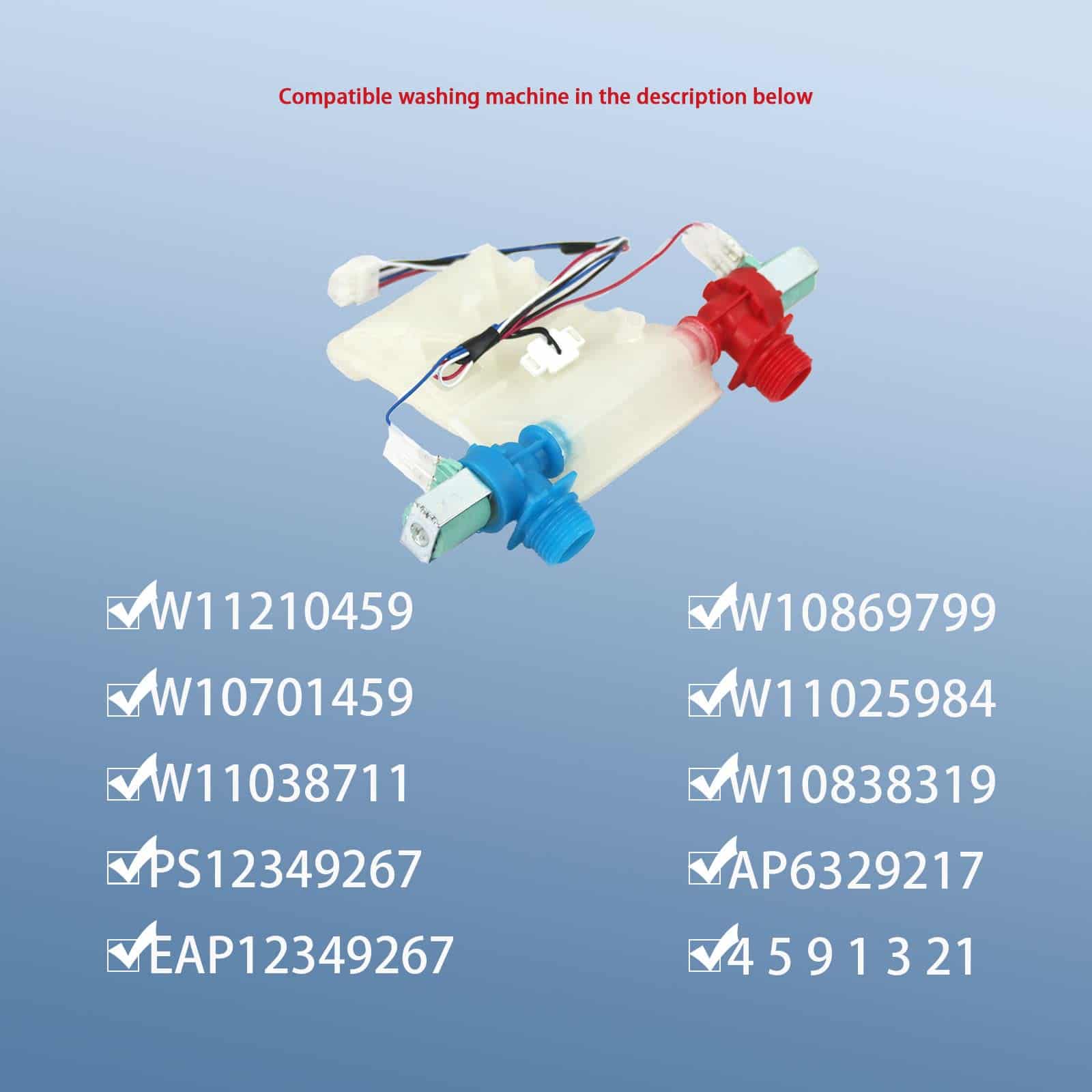 5. Contenido del paquete: recibirá una válvula de entrada de agua para lavadora W11210459, un reemplazo de calidad para la válvula de entrada de agua de su lavadora.