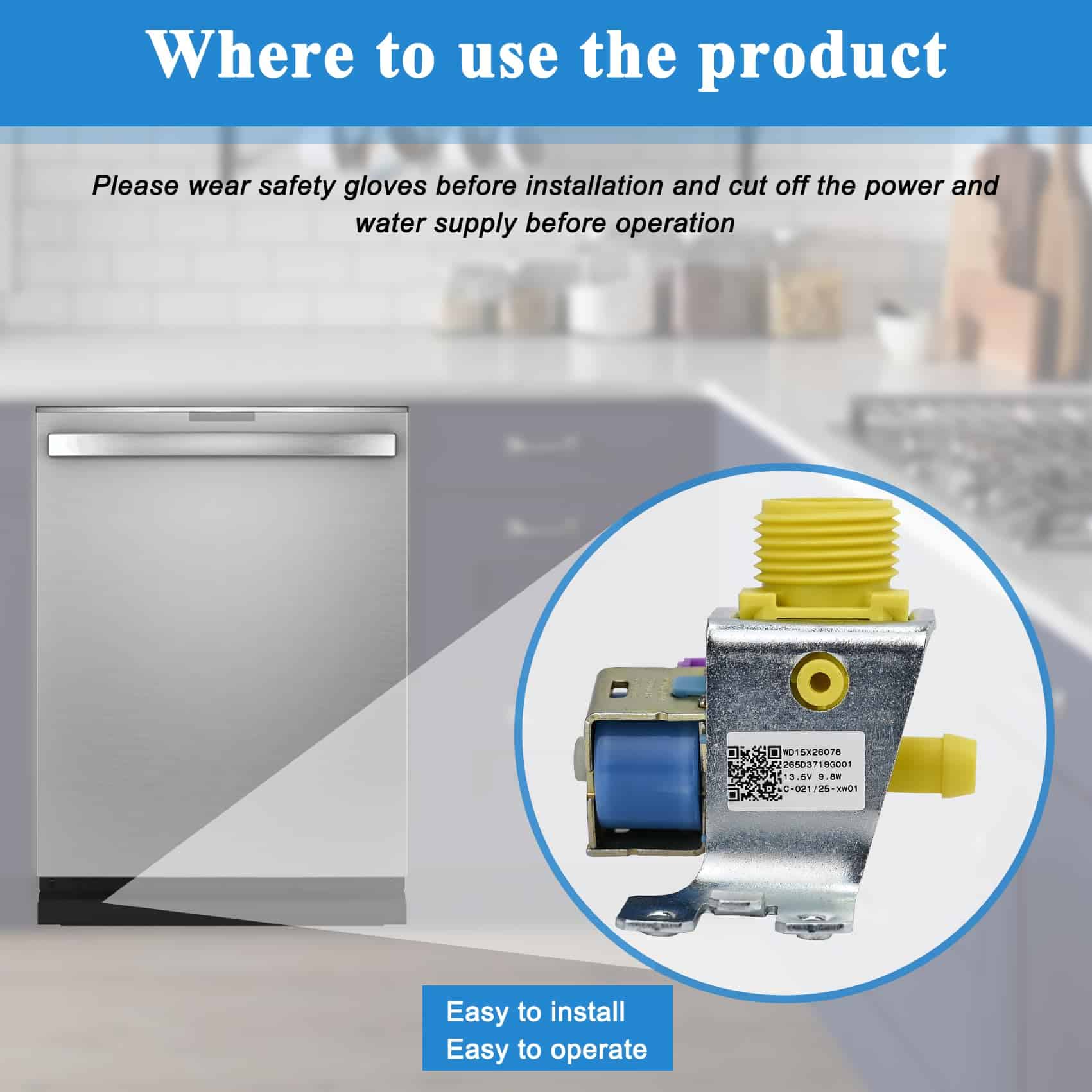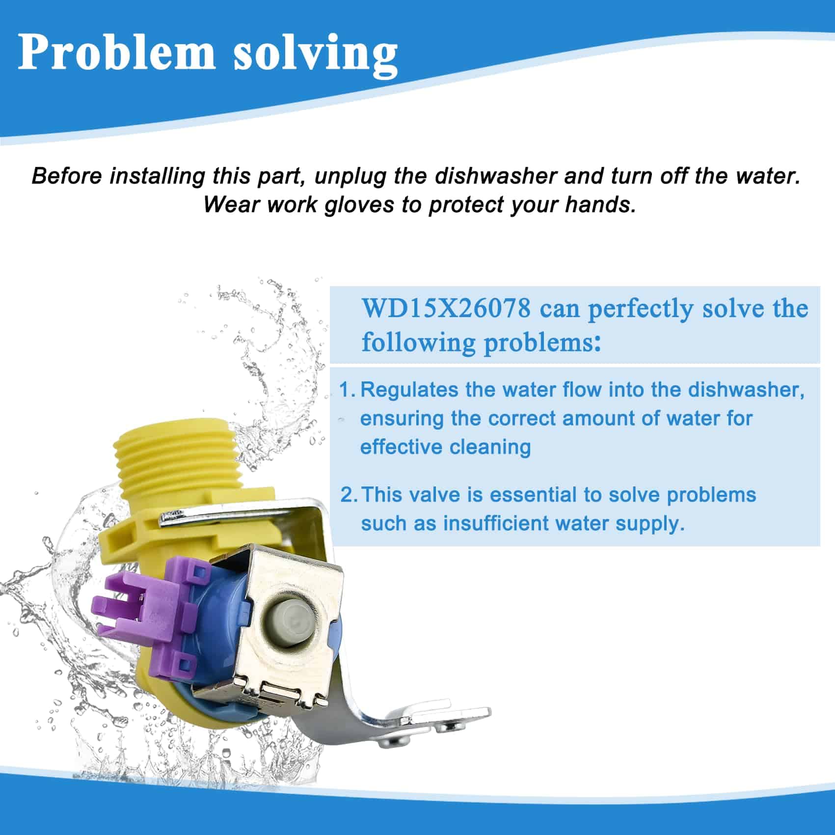 1. Alta Calidad Nuestras válvulas de entrada de agua para lavavajillas wd15x26078 están hechas de materiales de alta calidad, combinados con un proceso avanzado y se someten a estrictas pruebas de producto antes de salir de fábrica, y la calidad supera con creces a la de la OEM.
