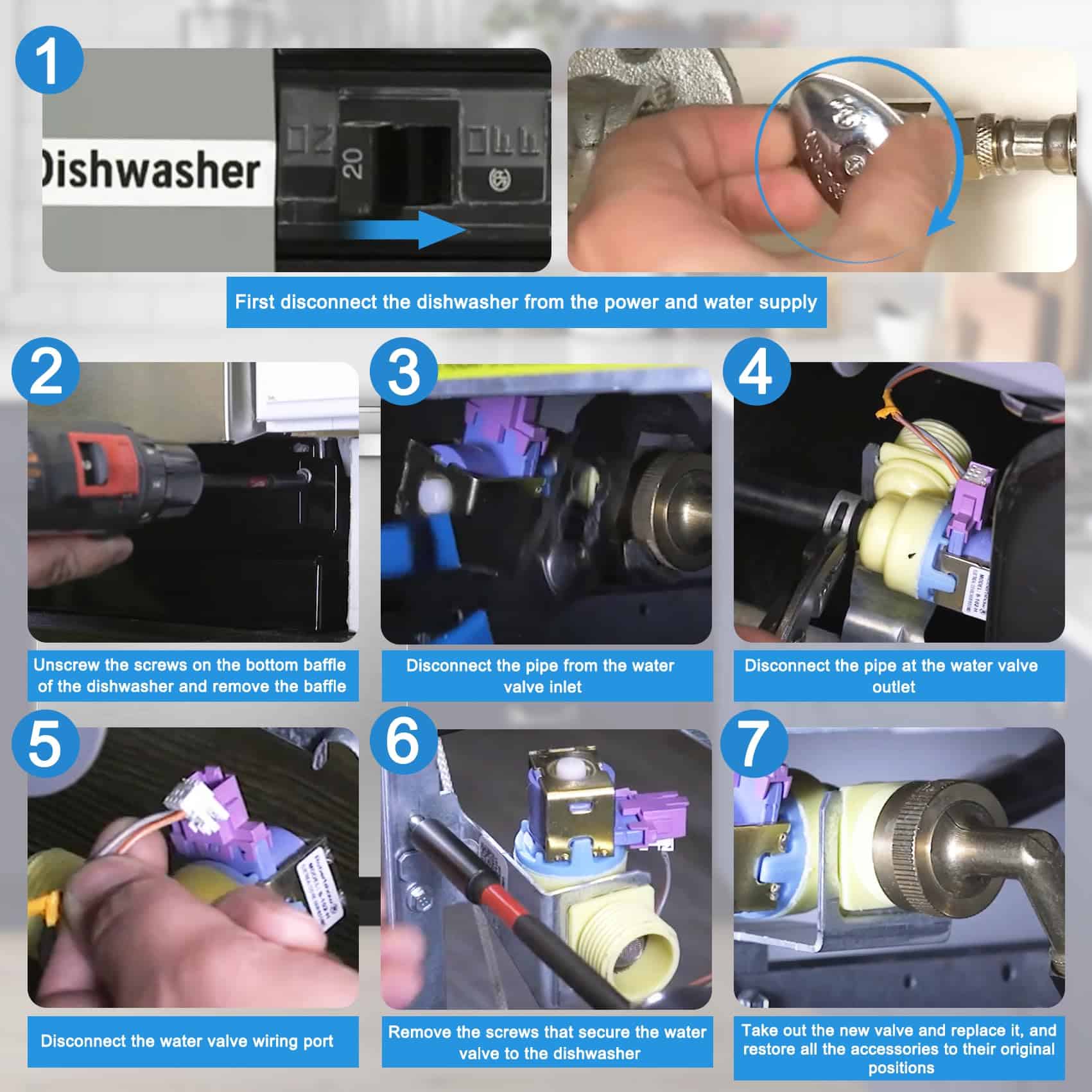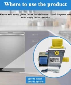 4. Notas de Compra La válvula de entrada de agua 4959029 tiene 1 válvula solenoide y 1 puertos roscados. La válvula de entrada de agua AP6986683 puede resolver perfectamente el problema del llenado deficiente de agua en el lavavajillas. Antes de instalar la válvula de entrada de agua PS16217027 para lavavajillas, desenchufe la máquina lavavajillas y cierre el suministro de agua. Use guantes de trabajo para proteger sus manos.