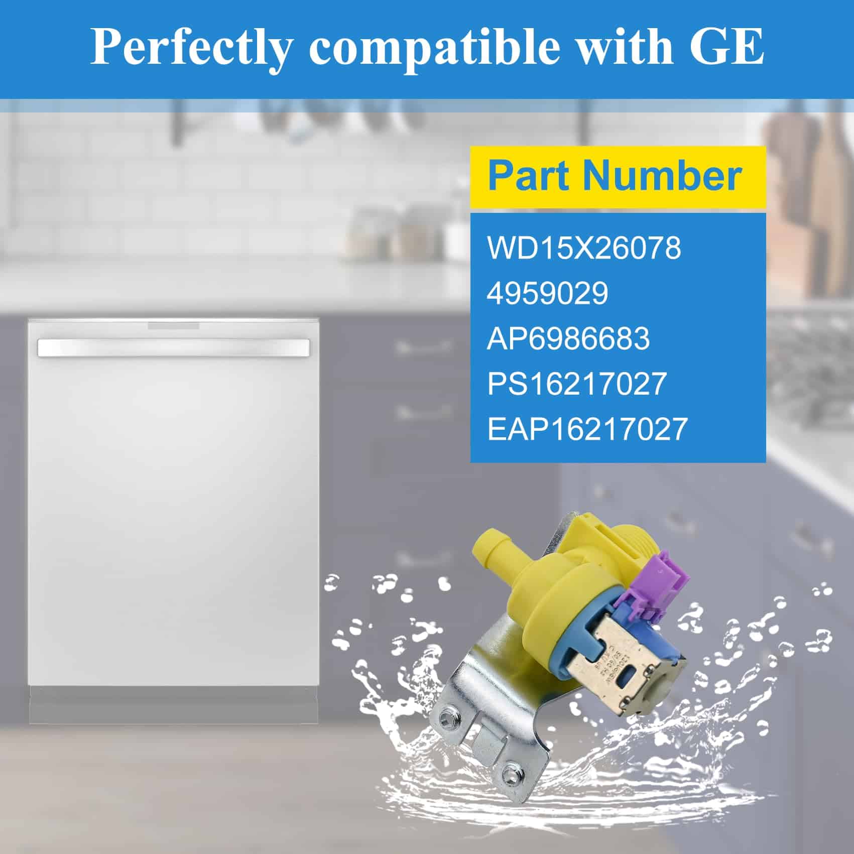 2. Número de Pieza La válvula de entrada de agua ge wd15x26078 se puede reemplazar por la válvula de entrada de agua 4959029, la válvula de entrada de agua AP6986683, la válvula de entrada de agua PS16217027, la válvula de entrada de agua EAP16217027, etc.