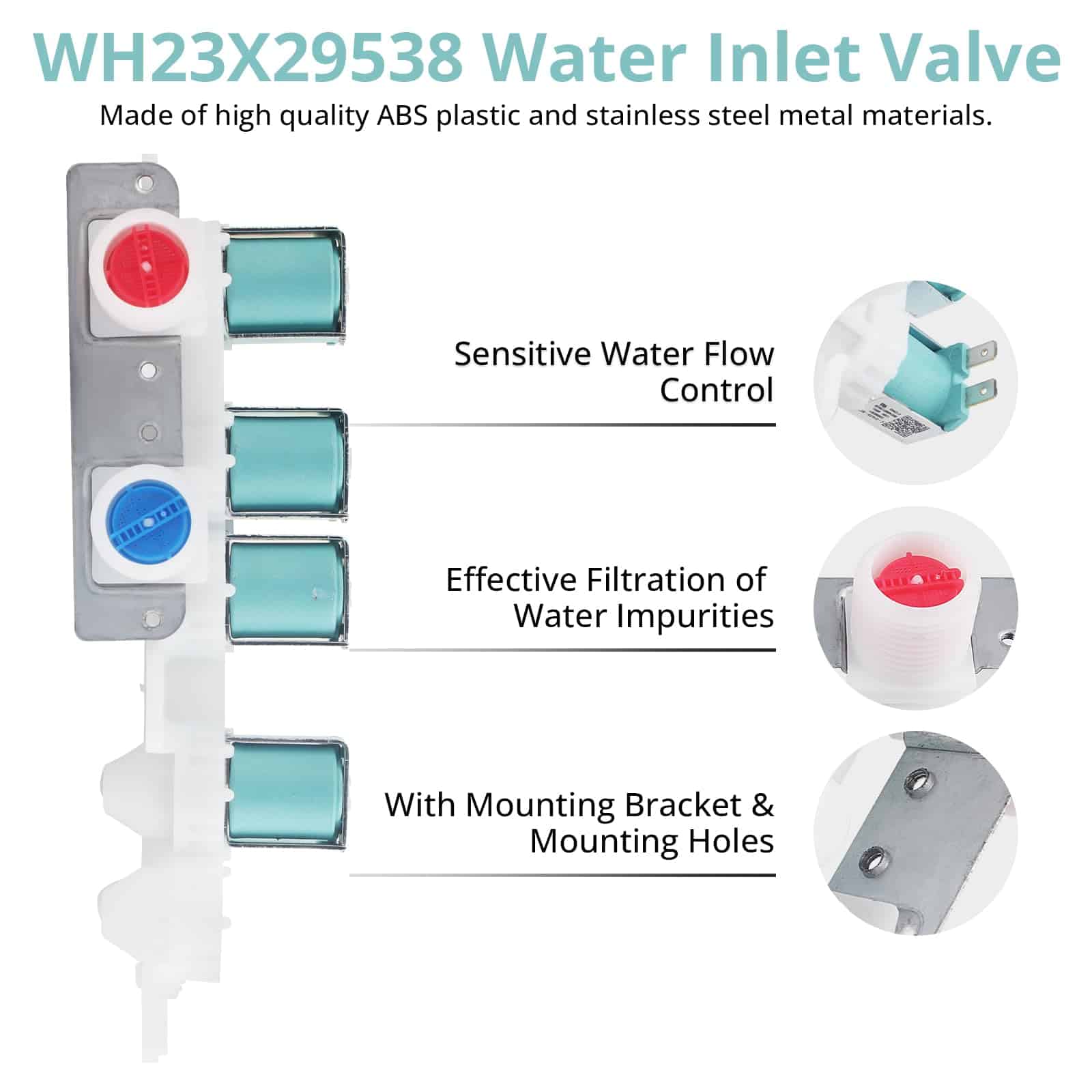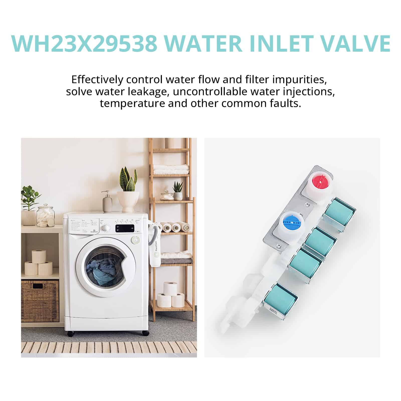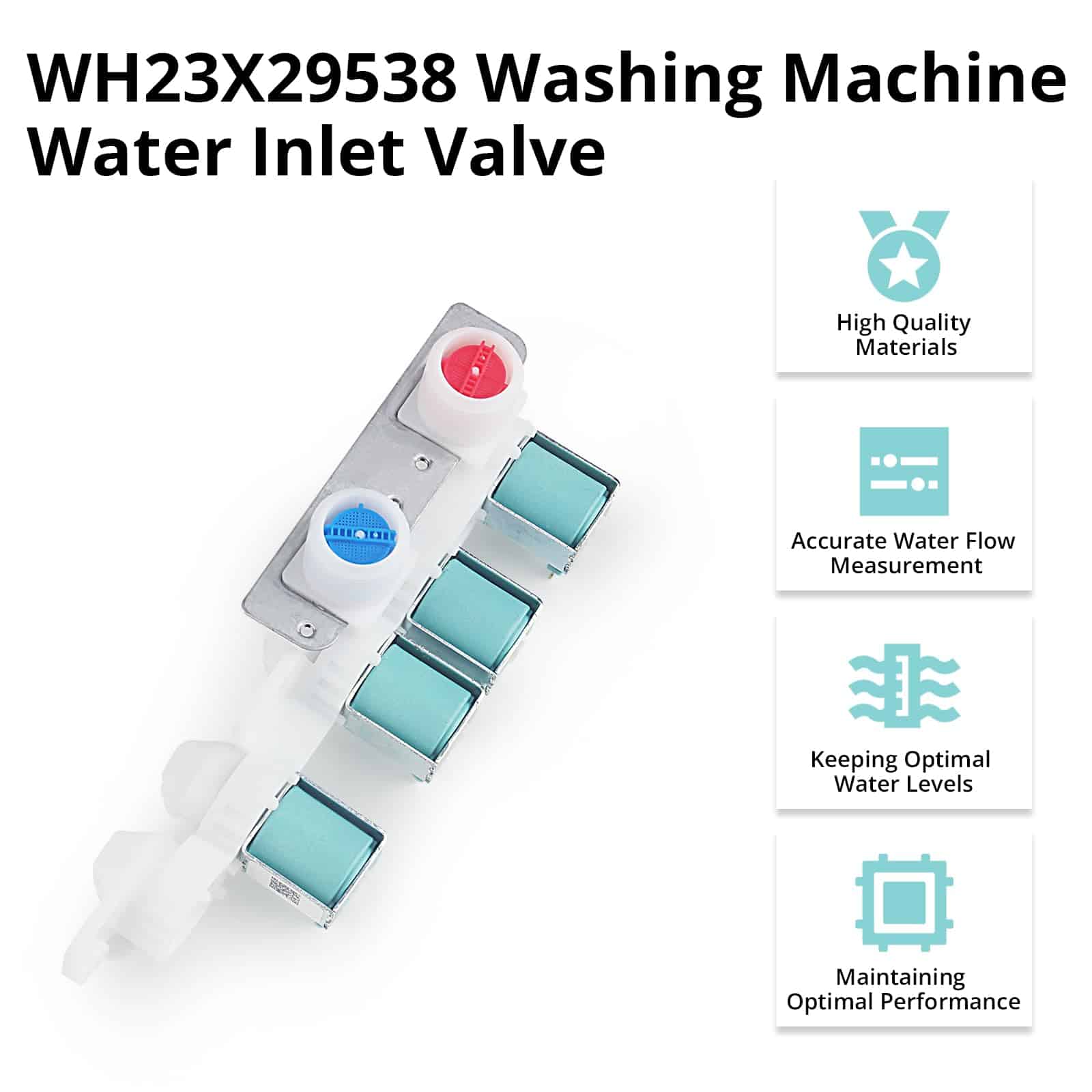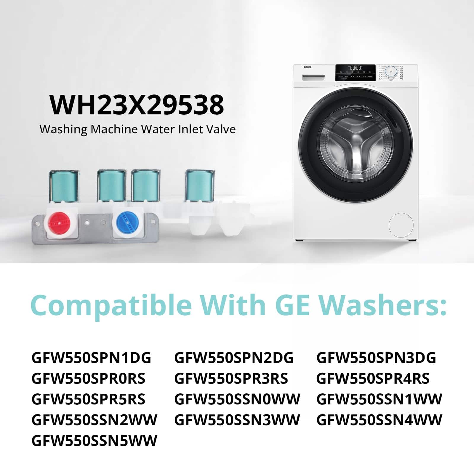 1. Compatibilidad: La válvula de entrada de agua WH23X29538 se adapta a las lavadoras GE, compatible con las lavadoras GE GFW550SPN1DG, GFW550SPN2DG, GFW550SPN3DG, GFW550SPR0RS, GFW550SPR3RS, GFW550SPR4RS, GFW550SPR5RS, GFW550SSN0WW, GFW550SSN1WW, GFW550SSN2WW, GFW550SSN3WW, GFW550SSN4WW, GFW550SSN5WW. 2. Eficiencia mejorada: La válvula de entrada de agua tiene dos entradas de agua y cinco salidas de agua con cuatro válvulas de agua de bobina, ayuda a controlar el flujo de agua en la lavadora mientras filtra las impurezas en el agua, y soluciona fallas comunes como fugas de agua, flujo de agua desigual, incapacidad para detener la inyección de agua o sin inyección de agua, y problemas de temperatura. 3. Material de calidad: La válvula de entrada de agua WH23X29538 para lavadora está hecha de plástico ABS de alta calidad y metal de acero inoxidable. El material plástico ABS es más duro y no es fácil de romper. El metal de acero inoxidable es más resistente a la corrosión, puede resistir la erosión de la humedad en la lavadora y no es fácil de oxidar, es más duradero y estable. 4. El paquete incluye: 1 x Válvula de entrada de agua WH23X29538. Reemplaza los modelos: 33090201, 4977241, AP6990115, PS16217225, EAP16217225, 0024000126GB, etc. Puede mejorar el efecto de lavado y hacer que la ropa esté más limpia, evitar fallos de la lavadora causados por un flujo de agua inestable durante el proceso de lavado. 5. Fácil de instalar: El diseño es simple y fácil de instalar, no requiere herramientas o pasos complejos, incluso sin habilidades profesionales, puede reemplazarlo fácilmente por su cuenta. Si tiene alguna pregunta sobre el producto, díganoslo, le mostraremos nuestra actitud sincera y una solución satisfactoria