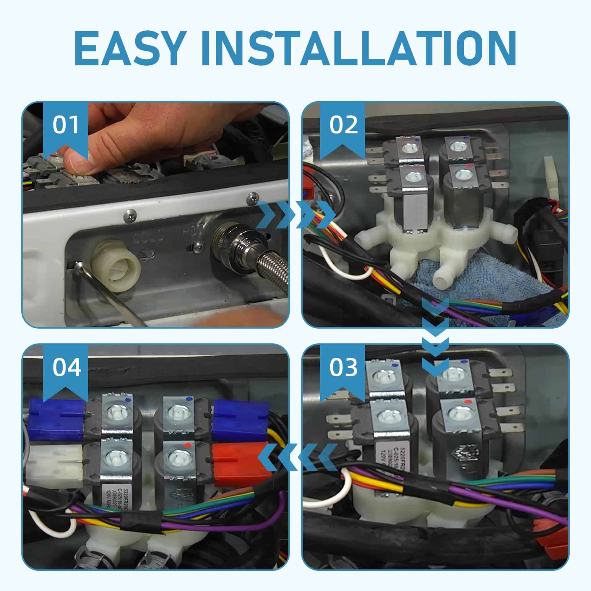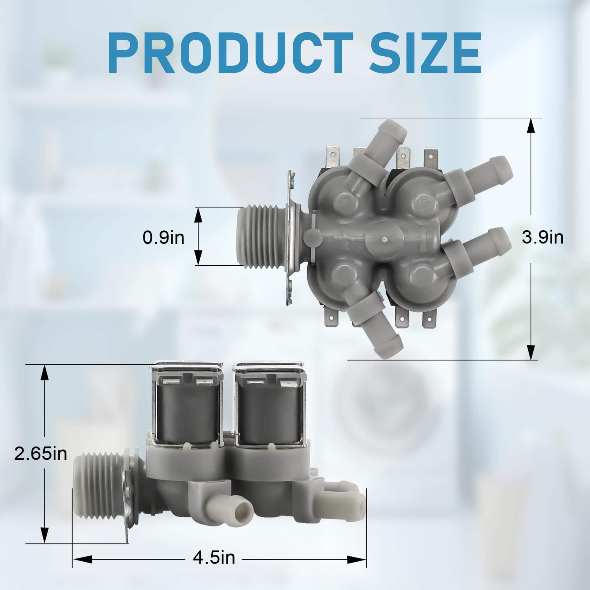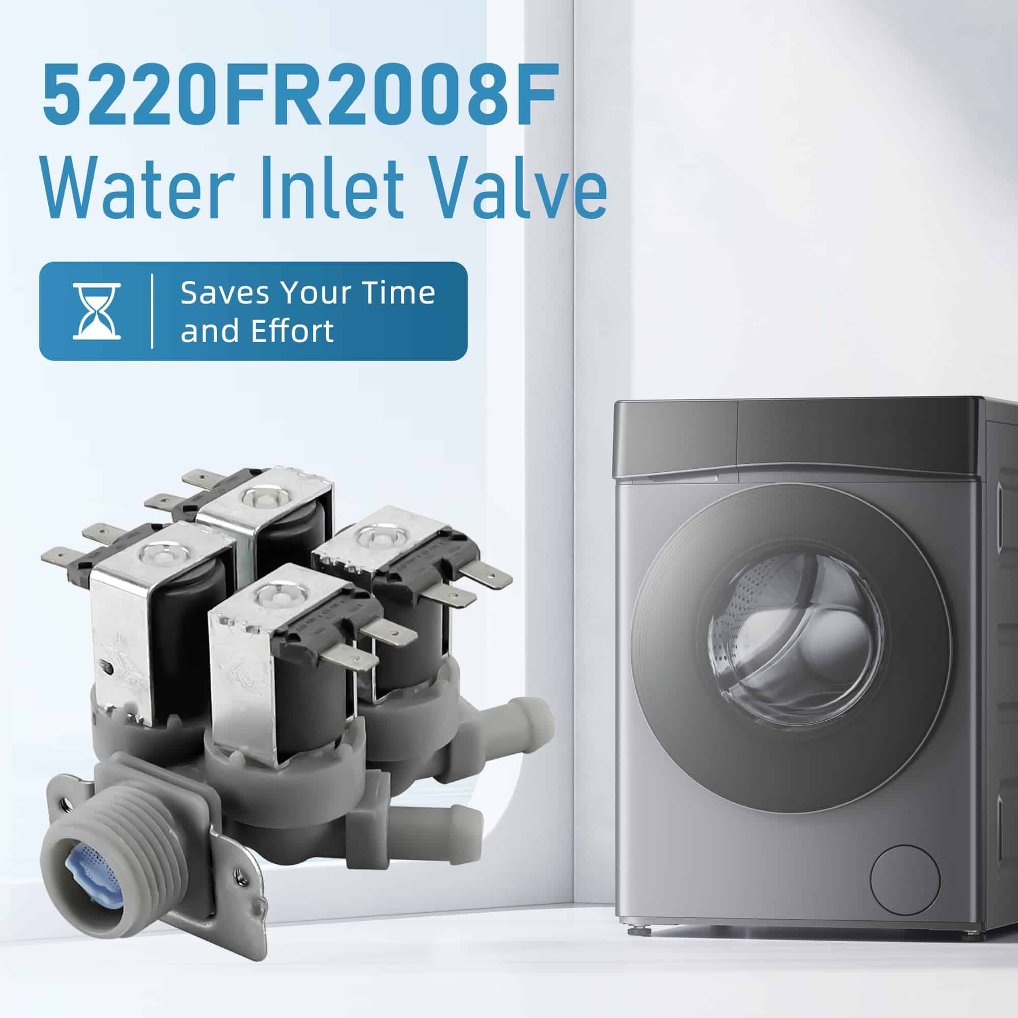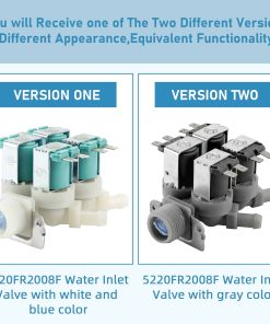 Si tu lavadora continúa llenándose después de estar llena, y si se llena lentamente, es posible que necesites reemplazar esta válvula. ESPECIFICACIÓN: – Válvula de entrada de agua y dispensador 5220FR2008F para lavadora – La válvula de entrada de agua (1 entrada y 4 salidas) se conecta a la fuente de agua y los cables de solenoide. AHORRA TIEMPO Y DINERO – Forma económica de arreglar o reparar una lavadora. MODELOS COMPATIBLES: 79640441900, 79640448900, 79641022900, 79641028900, 79641029900, 79641542110, 79641548110, 79641549110, 79642192900, 79642198900, 79642199900, WM0001HTM, WM0001HTMA (ASTEEUS), WM2450HRA. FÁCIL DE INSTALAR: – Puedes encontrar fácilmente el método de instalación buscando en el sitio de videos en línea el número de parte. – Toma fotos según sea necesario para garantizar el adecuado reensamblaje antes de proceder con el reemplazo. – Desenchufa la lavadora y corta el suministro de agua antes de instalar esta parte. Usa guantes de trabajo para proteger tus manos. Consulta tu manual del propietario o contáctanos para confirmar la compatibilidad con tu electrodoméstico.