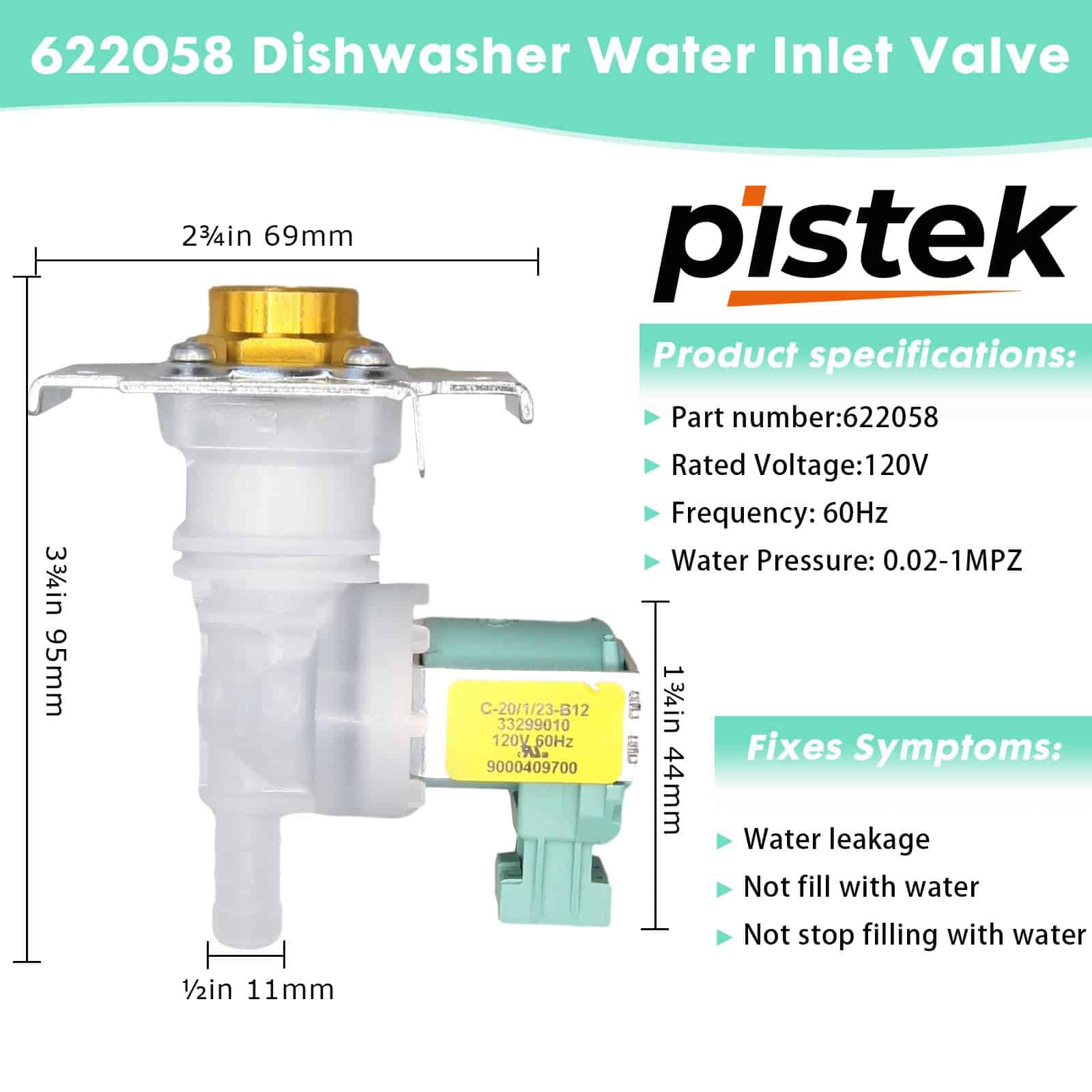 Válvula de Entrada de Repuesto Pistek 622058 Para