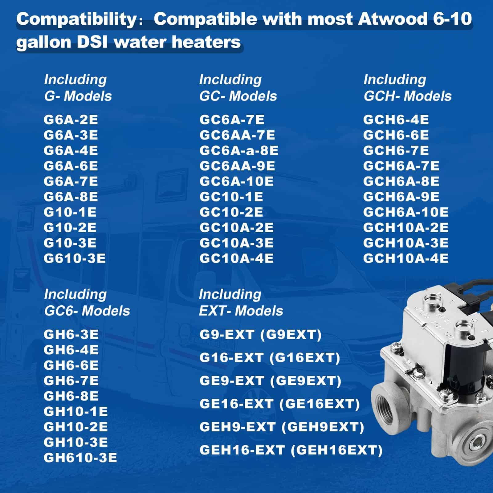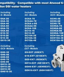 Esta válvula reemplaza las partes OEM 92078, 93321, 93844, 93870 y se adapta a modelos de Atwood como G6A-2E, G6A-4E, G6A-8E, GC6AA-10E, entre otros.
