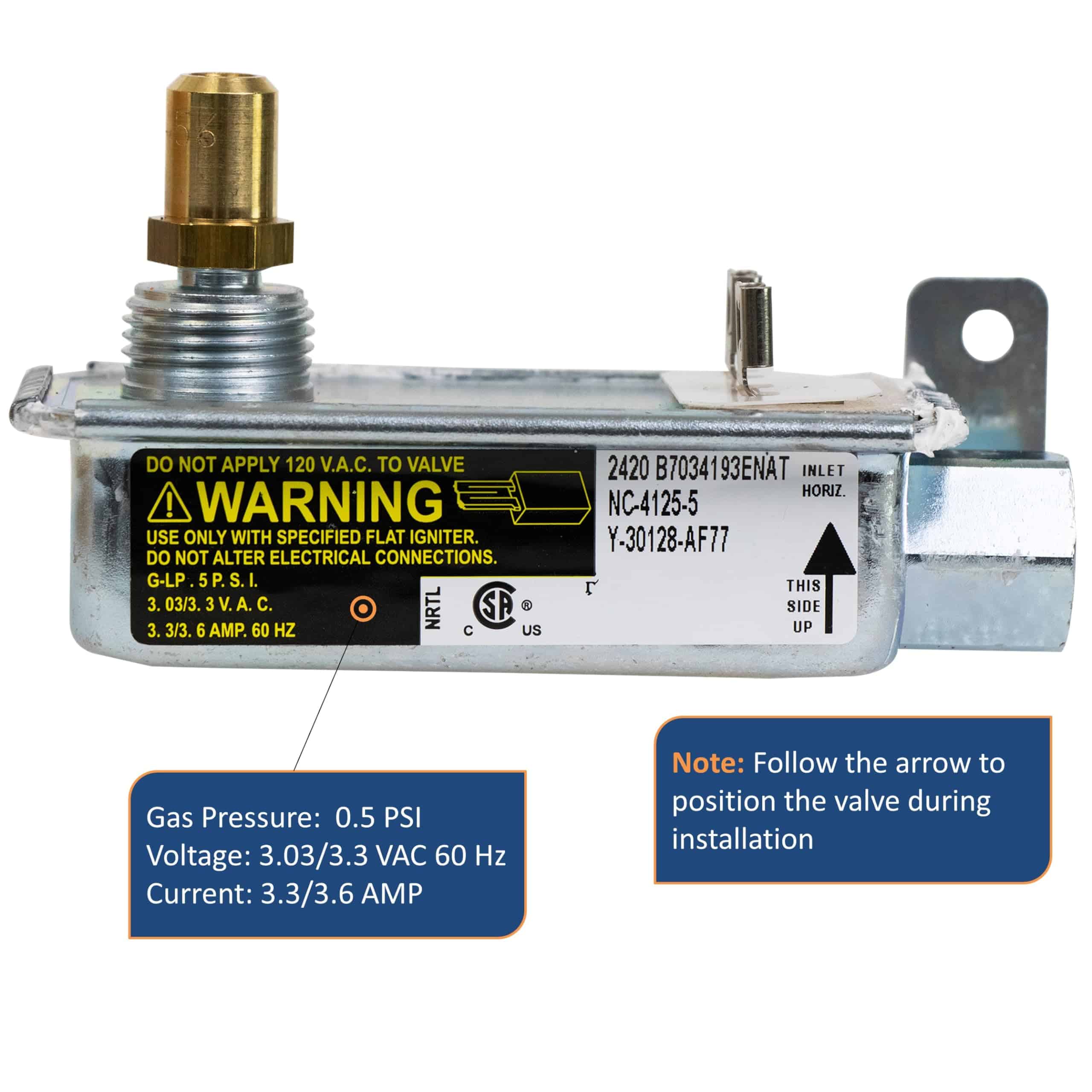 Válvula de seguridad de gas de repuesto para estufas de gas de la gama cocinas. Esta válvula de gas es adecuada para una variedad de estufas de gas, incluidas las marcas Awoco y otros modelos de cocinas de gas. Con un voltaje de 3.03VAC a 3.3VAC y una corriente de 3.3 A – 3.6 A, esta válvula de gas garantiza un funcionamiento seguro y eficiente. Es importante tener en cuenta que esta válvula de gas requiere que el encendedor esté funcionando correctamente antes de permitir que pase el gas. Además, es fundamental desconectar el electrodoméstico de la alimentación eléctrica y de gas antes de realizar cualquier mantenimiento. Esta válvula de gas es compatible tanto con gas natural (NG) como con gas propano (LP), con una presión de gas de 0.5 PSI. Las dimensiones de esta válvula de gas son 3-5/8″ x 1-11/16″ x 1″. Aprobada por CSA y con alternativas de piezas disponibles, esta válvula de gas es una opción confiable y segura para reparaciones de estufas de gas.