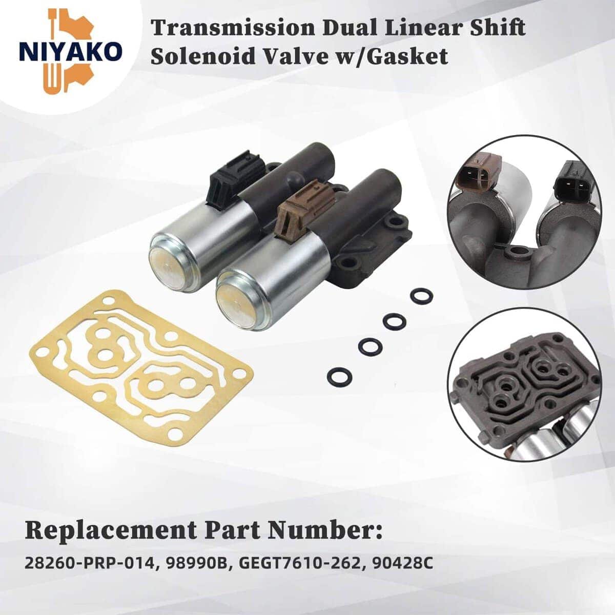 Válvula de Solenoide de Cambio Dual Lineal de Transmisión Niyako con Junta de Repuesto, diseñada para ofrecer un rendimiento confiable y duradero. Fabricada con materiales de alta calidad, esta válvula de solenoide es una pieza de repuesto perfecta para su Accord 2003-2008. En Niyako nos enorgullece ofrecer productos de alta calidad para mantener su vehículo en las mejores condiciones posibles. Reemplace su válvula de solenoide con confianza usando los números de parte de repuesto: 28260-PRP-014, 98990B, GEGT7610-262, 90428C. ¡Restaure la funcionalidad óptima de su transmisión con esta válvula de solenoide de Niyako!