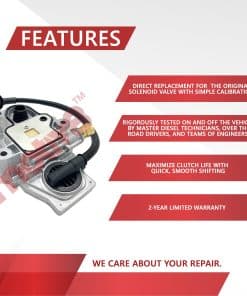 4. PRUEBA EN VEHÍCULO – Esta válvula de solenoide de control de embrague ha sido sometida a pruebas exhaustivas en y fuera del vehículo para garantizar un ajuste y rendimiento adecuados.