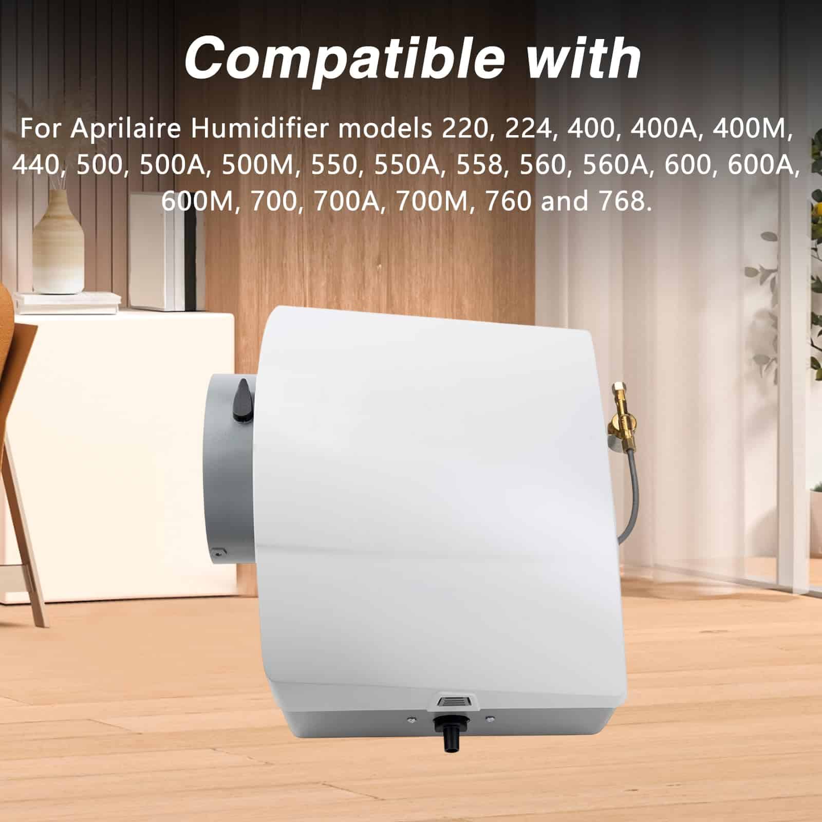 3. Compatible con: Esta válvula solenoide de agua para humidificador es compatible con los modelos Aprilaire 220, 224, 400, 400A, 400M, 440, 500, 500A, 500M, 550, 550A, 558, 560, 560A, 600, 600A, 600M, 700, 700A, 700M, 760 y 768. Es el reemplazo perfecto para el modelo 4040. La válvula solenoide 4040 cuenta con roscas 7/16″-24 UNS diseñadas para aceptar un accesorio de compresión para tubería de » .