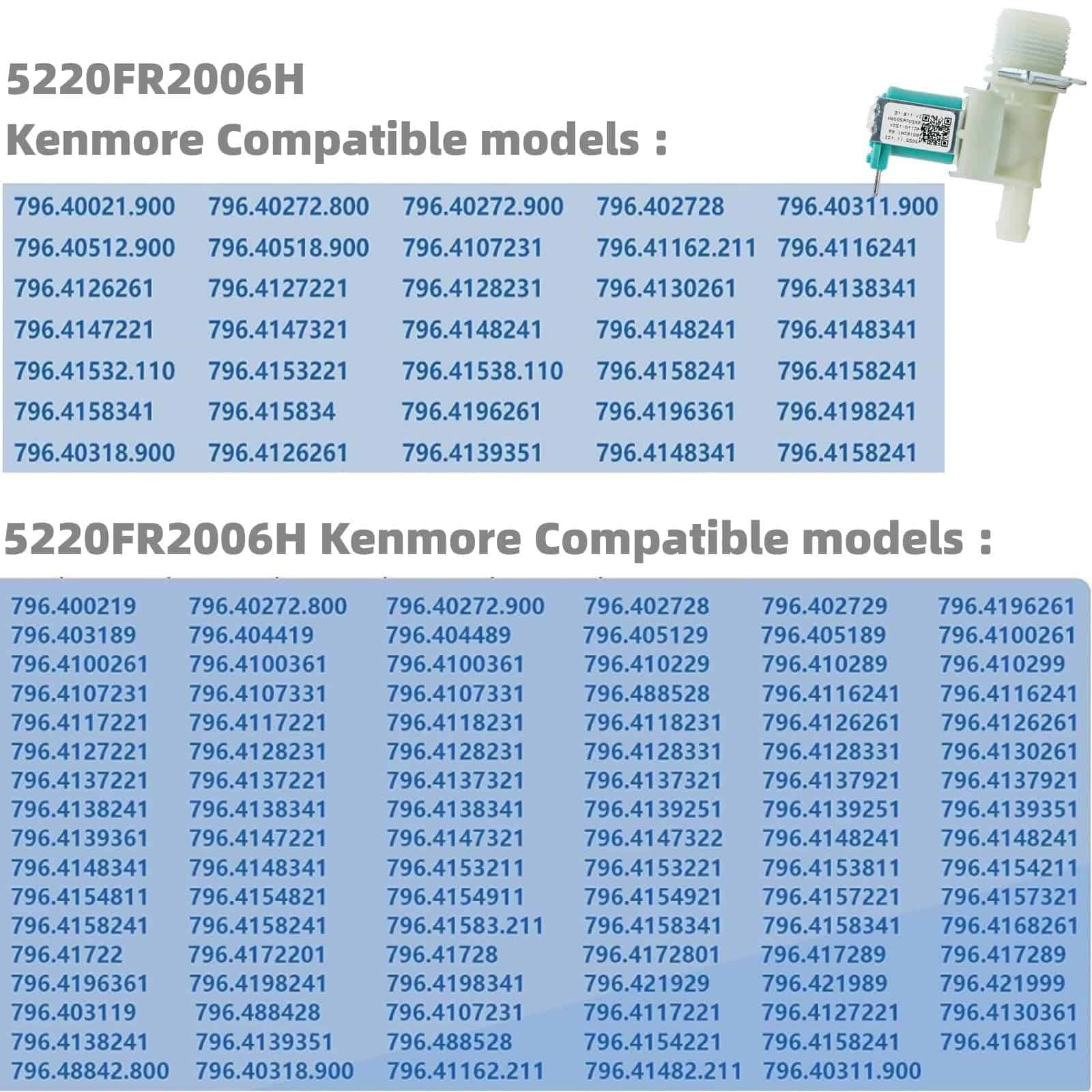 5220FR2075L Modelos compatibles Kenmore: 796.40021.900, 796.40272.800, 796.40272.900, 796.402728, 796.40311.900, 796.40318.900, 796.40512.900, 796.40518.900, 796.4107231, 796.41162.211, 796.4116241, 796.4126261, 796.4126261, 796.4127221, 796.4128231, 796.4130261, 796.4138341, 796.4139351, 796.4147221, 796.4147321, 796.4148241, 796.4148241, 796.4148341, 796.4148341, 796.41532.110, 796.4153221, 796.41538.110, 796.4158241, 796.4158241, 796.4158241, 796.4158341, 796.4158341, 796.4196261, 796.4196361, 796.4198241, 796.4198341. 5220FR2075L Modelos compatibles LG: WM1388HW, WM1812CW, WM1814CW, WM1815CS, WM2010CW, WM2016CW, WM2050CW, WM2050CW/00, WM2075CW, WM2077CW, WM2101HW, WM2140CW, WM2233HD, WM2233HS, WM2233HU, WM2233HW, WM2233HW/00, WM2240CW, WM2250CW, WM2277HB, WM2277HS, WM2277HW, WM2301HR, WM2301HW, WM2350HRC, WM2350HWC, WM2455HG, WM2455HW, WM2496HSM, WM2496HWM, WM2601HL, WM2601HR, WM2601HW, WM2650HRA, WM2650HWA, WM2655HVA, WM2677HBM, WM2677HSM, WM2677HWM, WM2701HV, WM3050CW, WM3070HRA, WM3070HWA, WM3080CW, WM3080CW/00, WM3150HVC, WM3150HWC, WM3170CW, WM3170CW/01, WM3180CW, WM3180CW/00, WM3250HRA, WM3250HVA, WM3250HWA, WM3270CW, WM3270CW/00, WM3370HRA, WM3370HVA, WM3370HWA, WM3470HVA, WM3470HWA, WM3570HVA, WM3570HVA/01, WM3575CV, WM3575CW, WM3670HRA, WM3670HRA/00, WM3670HVA, WM3670HVA/00, WM3670HWA, WM3670HWA/00, WM3770HWA, WM4070HVA, WM4070HWA, WM4270HVA, WM4270HWA, WM5000HVA, WM5000HWA, WM8000HVA, WM8000HWA, WM8100HVA, WM8100HVA/00, WM8100HWA, WM8500HVA, WM9000HVA, WM9000HVA/00, WM9000HWA, WM9000HWA/00, WM9500HKA. 5220FR2006H Modelos compatibles Kenmore: 796.400219, 796.40272.800, 796.40272.900, 796.402728, 796.402729, 796.40311.900, 796.403119, 796.40318.900, 796.403189, 796.404419, 796.404489, 796.405129, 796.405189, 796.4100261, 796.4100261, 796.4100361, 796.4100361, 796.410229, 796.410289, 796.410299, 796.4107231, 796.4107231, 796.4107331, 796.4107331, 796.41162.211, 796.4116241, 796.4116241, 796.4117221, 796.4117221, 796.4117221, 796.4118231, 796.41