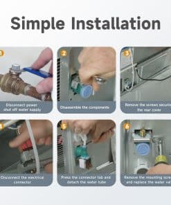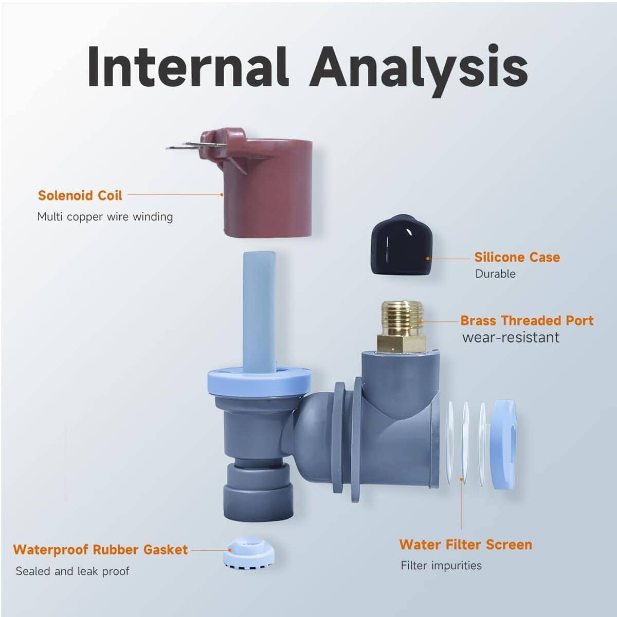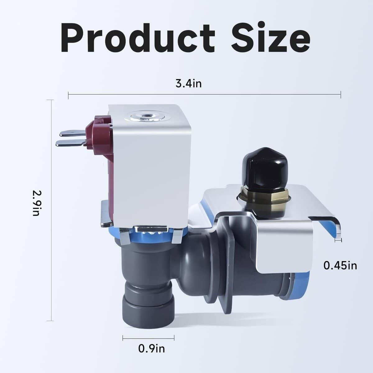 Válvula solenoide de entrada de agua para refrigeradores que necesitan reemplazo por fallas en la fabricación de hielo, fugas o un flujo de agua deficiente. Esta válvula de entrada de agua para fabricante de hielo es compatible con una amplia gama de modelos de refrigeradores Whirlpool y Maytag, entre otros. Construida con materiales duraderos y de primera calidad, esta válvula cuenta con una carcasa de metal resistente al desgaste y componentes plásticos resistentes al calor para una fiabilidad a largo plazo. El control preciso del flujo de agua asegura un suministro estable y eficiente, evitando fugas o suministro insuficiente de agua. Aumenta la eficiencia de la fabricación de hielo, reduce el consumo de energía y garantiza el funcionamiento estable de los sistemas de hielo y agua. Se recomienda apagar la energía y el suministro de agua antes de la instalación, y se aconseja la instalación profesional para un rendimiento óptimo.