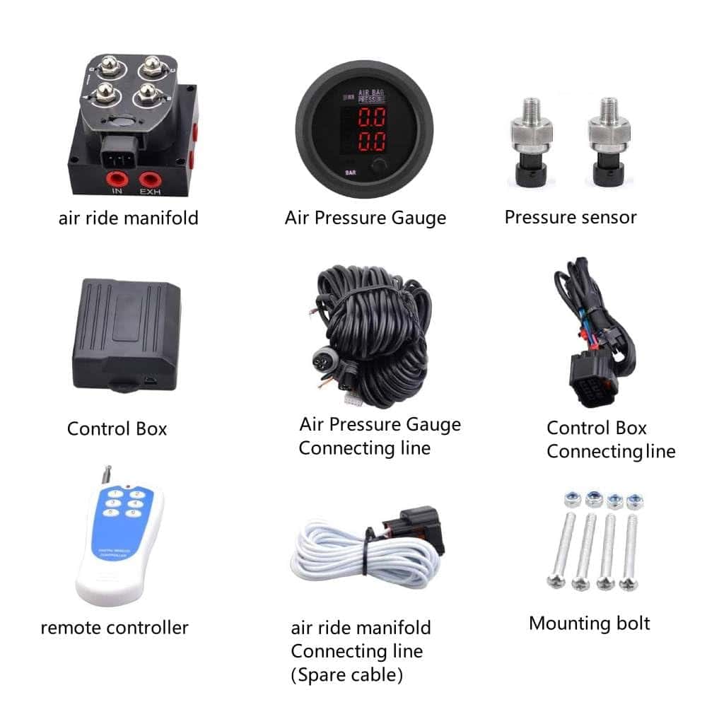La Válvula Solenoide de Suspensión Neumática ZHSYMX de 12v con control remoto y doble medidor de presión de aire es adecuada para automóviles y motocicletas con sistema de suspensión de bolsa de aire. Es compatible con el controlador e-Level u otros controladores de marcas diferentes. Su robusta estructura interna maximiza la velocidad de flujo y ofrece operación de hasta 200 PSI durante millones de ciclos. Controla 4 válvulas de forma individual y cuenta con un diseño compacto para un uso mínimo de espacio. Incluye un control remoto que te permite controlar de forma remota la elevación de la bolsa de aire, con una distancia de control de hasta diez metros. Las dos líneas de la válvula son resistentes a la intemperie para entornos adversos bajo el vehículo. Cuenta con dos puertos hembra de entrada de 1/4 de pulgada y dos puertos hembra de escape de 1/8 de pulgada. Dispone de puertos de entrada y salida dobles para maximizar el flujo. Es una sustitución directa y fácil de operar, con puertos de 1/4 de pulgada NPT que ofrecen mayor flexibilidad de instalación. Los puertos están precableados y numerados para reducir el tiempo de instalación. Las válvulas de suspensión neumática ofrecen una instalación sin problemas y una operación fiable.