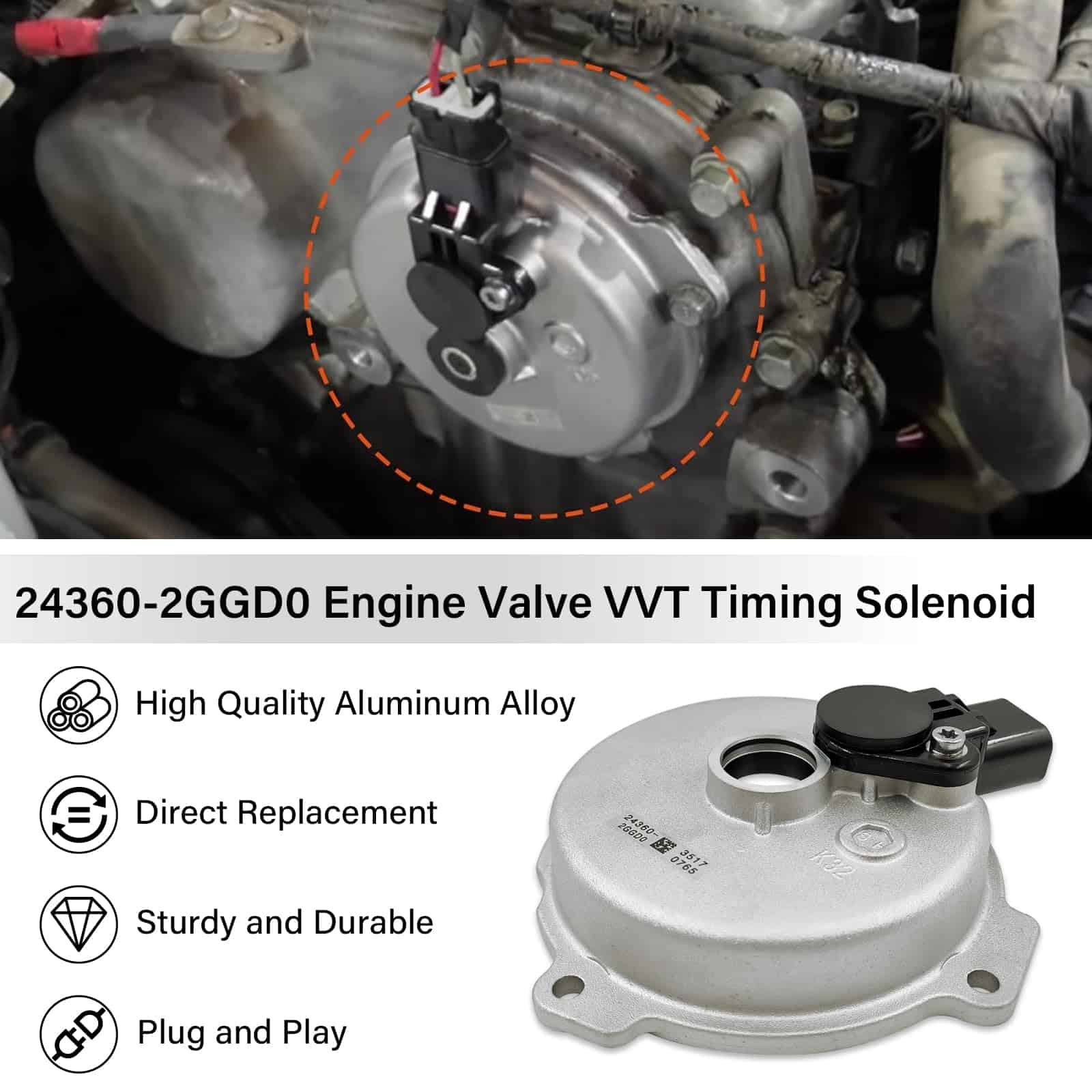 Válvula Solenoide de Tiempo Variable de Motor 243602GGD0 con Sensor: