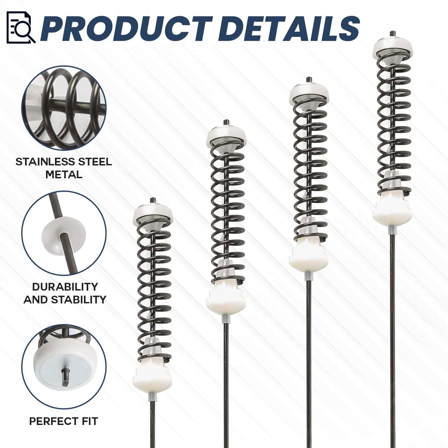 Las varillas de suspensión para lavadora W10780048 son un componente esencial para mantener la estabilidad de la tina de lavado en lavadoras automáticas. Este kit de varillas de suspensión incluye 4 varillas de suspensión, 4 bolas de suspensión y 4 alojamientos de bolas de suspensión, todo lo que necesita para mantener su lavadora funcionando sin problemas. Fabricadas con materiales duraderos de alta calidad, estas varillas están diseñadas para soportar cargas desequilibradas y mantener la tina de lavado en su lugar durante el ciclo de lavado. Compatible con marcas populares como Whirlpool, Maytag, Kenmore y Amana, estas varillas de suspensión son la solución perfecta para eliminar la vibración y el movimiento excesivos de su lavadora. Además, ofrecemos una garantía de devolución de dinero de 30 días para que pueda comprar con total tranquilidad. ¡Ordene las varillas de suspensión para lavadora W10780048 hoy mismo y mantenga su lavadora funcionando como nueva!