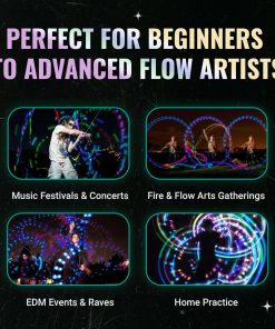 UltraPoi se enorgullece de presentar nuestro nuevo producto LED profesional, ¡el Ultralight! ¡El Ultralight es la primera varita de luz LED que tiene control independiente de modo superior/inferior y selección de colores personalizada, no solo colores preestablecidos! El Ultralight utiliza nuestro sistema de doble microprocesador para controlar 4 LEDs RGB que ofrecen espectros completos de color, brillo superior y combinaciones infinitas de patrones. Combina tus colores, modos y opciones favoritos para crear un espectáculo de luces que sea increíblemente único para ti. Largo: 131mm | Masa: 40g (con batería) | Diámetro: 22mm | Baterías: Cada Ultralight solo requiere 1 batería AAA (no incluida) y funcionará a pleno brillo durante aproximadamente 6-10 horas. Necesitas 2 ultralights y fundas de helix vacías con Ultra Leash para un set completo de Helix Poi, también disponible como set en nuestra tienda bajo «Helix Poi».