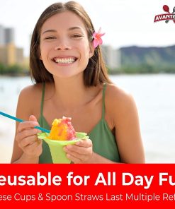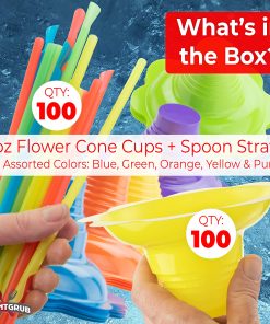 Recibirás 100 vasos de plástico para raspado con diseño de flor y 100 popotes de cuchara de colores surtidos. ¡Garantía de Satisfacción del 100% de por Vida!