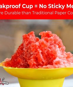 ¡Nuestros porta conos de nieve están diseñados para mantener el hielo con sabor donde pertenece: ¡en la taza! El interior de la taza es cónico, lo que significa que el hielo derretido se acumulará en el fondo a prueba de fugas y no se derramará por los lados! ¿Qué Más Puedo Servir en Mis Vasos de Plástico para Raspados
