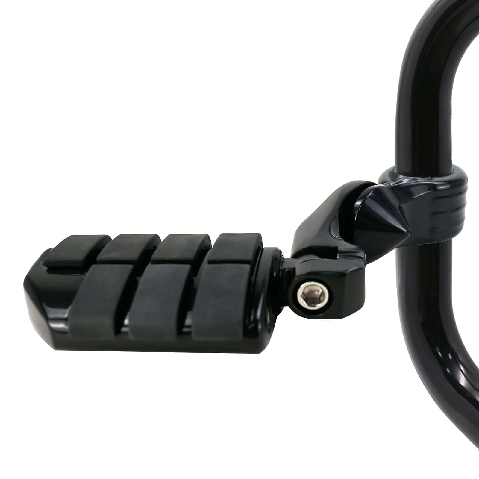 5. COMPATIBILIDAD – Se adapta a barras protectoras/motor de 1,25″, como Harley Sportster Softail Touring Road Glide Road King Street Glide Electra Glide. No es compatible con barras protectoras cortadas.