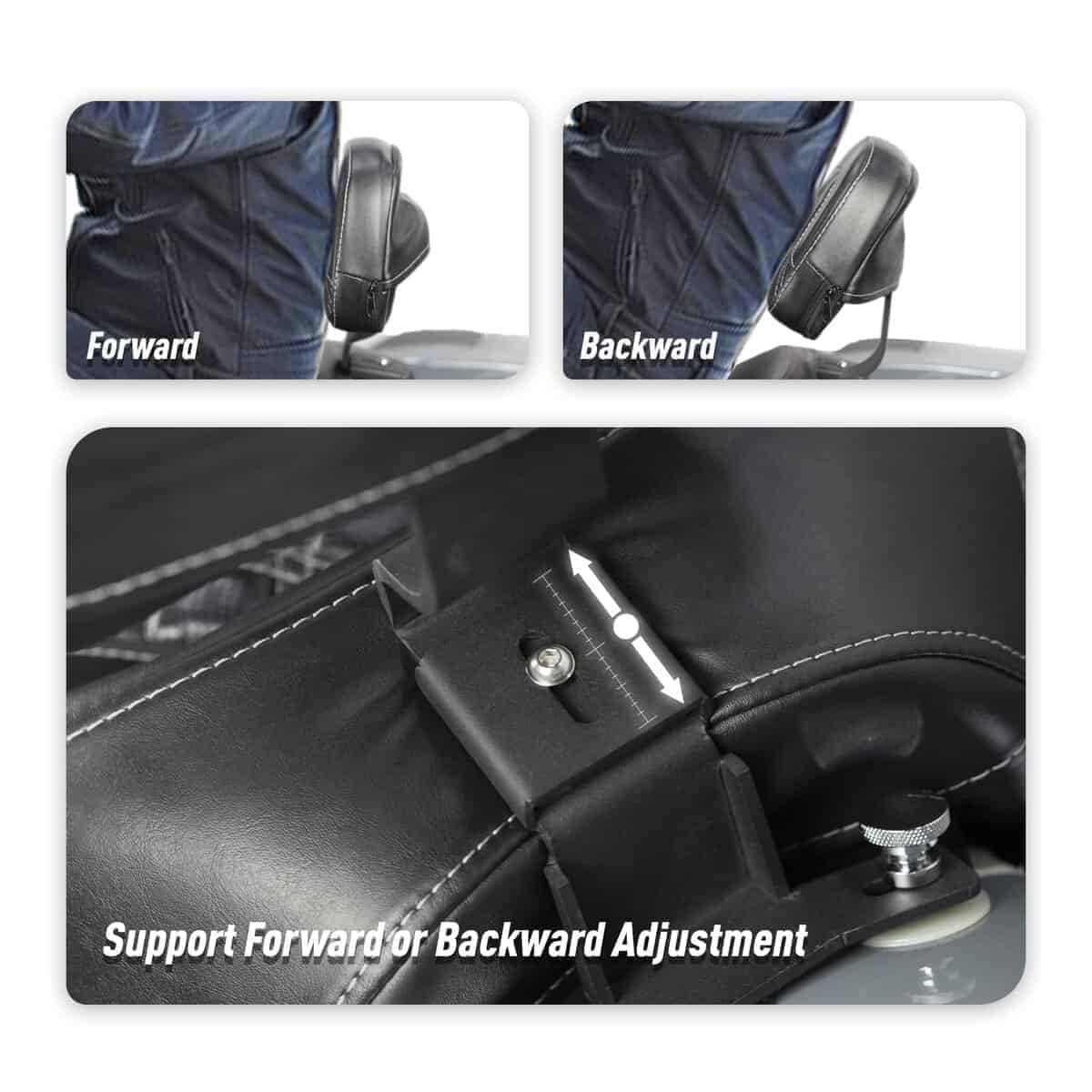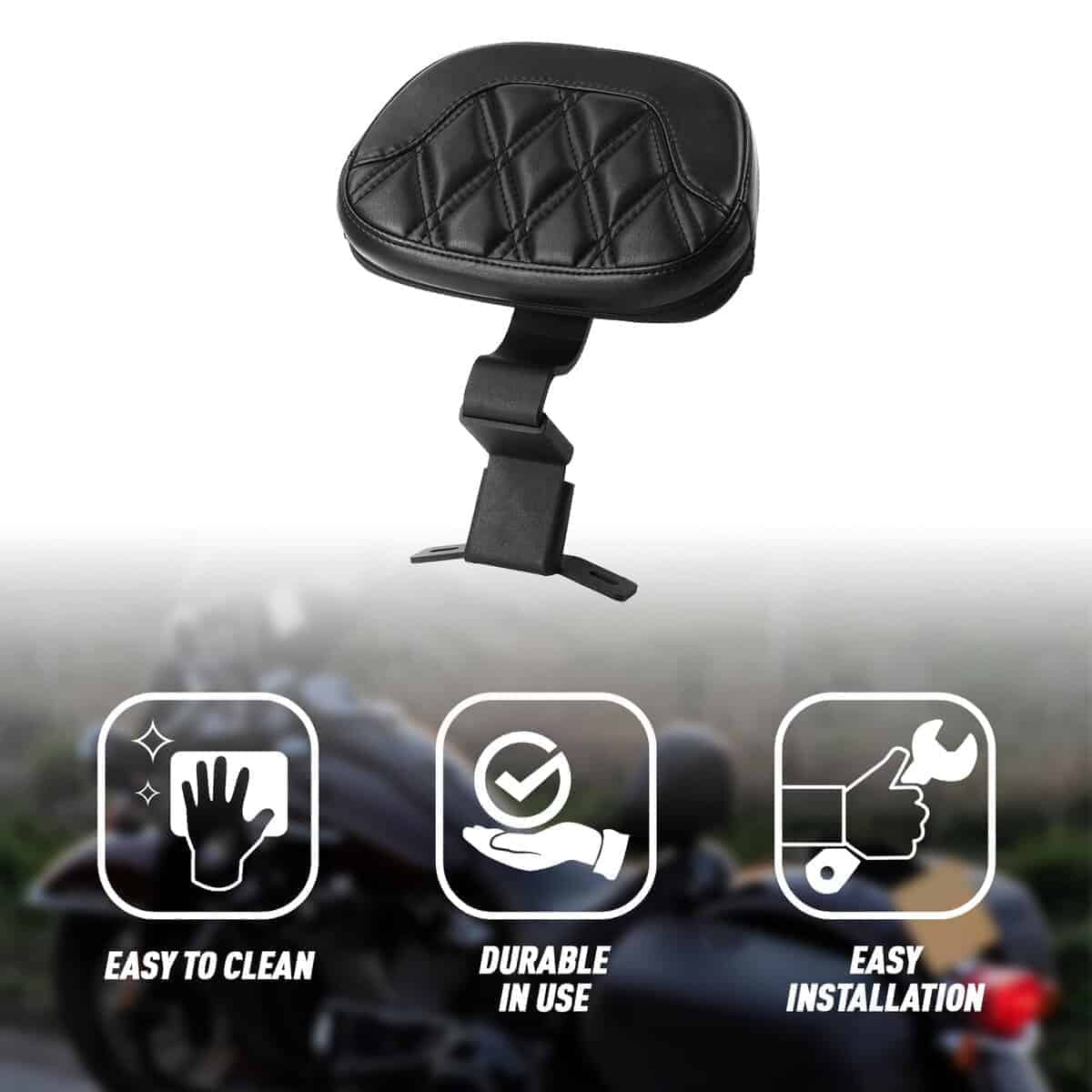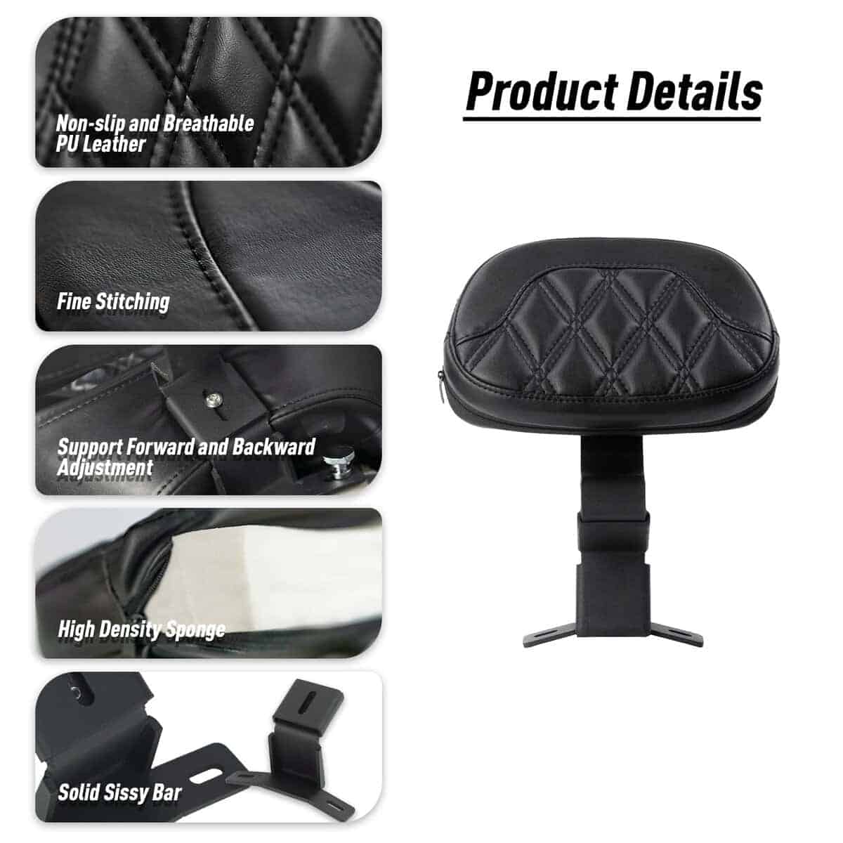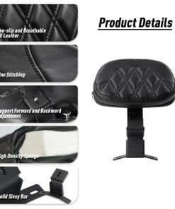 1. APLICABILIDAD – Solo se ajusta al asiento de perfil bajo de Harley 2009-2022, como Road King Street Glide Road Glide Electra Glide CVO (excepto FLH posterior al ’21), etc. No se adapta a los modelos Trike. 2. COMODIDAD – Hecho de cuero PU transpirable y amigable con la piel con una esponja suave incorporada y un diseño ergonómico, proporcionando un apoyo cómodo a la cintura en los viajes de larga distancia. 3. AJUSTABILIDAD – El soporte de montaje tiene una posición ajustable reservada, para que el conductor pueda ajustar el respaldo hacia adelante o hacia atrás según sea necesario. 4. DURABILIDAD – Materiales de primera calidad con una artesanía excelente aseguran que el respaldo tenga una estructura sólida y duradera, sin preocupaciones por deformaciones y seguridad durante el uso. A prueba de lluvia, anti-óxido, úselo con confianza en diversas condiciones climáticas. 5. FACILIDAD DE INSTALACIÓN – Viene con las piezas de montaje necesarias y es fácil de instalar. Nota: Por favor, confirme los modelos antes de comprar.