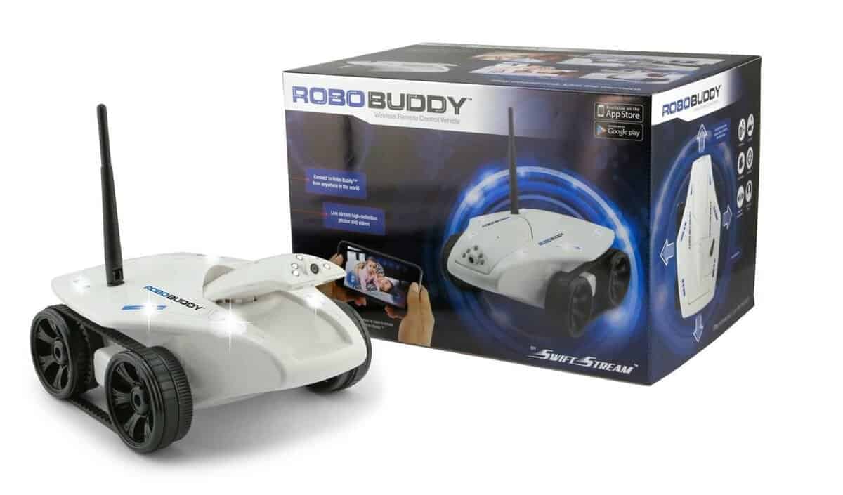 ¡Conéctate a Robobuddy en tu smartphone o tablet desde cualquier parte del mundo a través de una aplicación gratuita e Internet local! Robobuddy te da tranquilidad al mantener un ojo en las cosas que más importan. Robobuddy puede ser tu monitor de bebé, monitor de hogar, monitor de mascotas e incluso tu vehículo de entrega. Las fotos y videos de alta definición en vivo se pueden tomar desde la cámara de video HD incorporada. La comunicación bidireccional te permite hablar y escuchar.