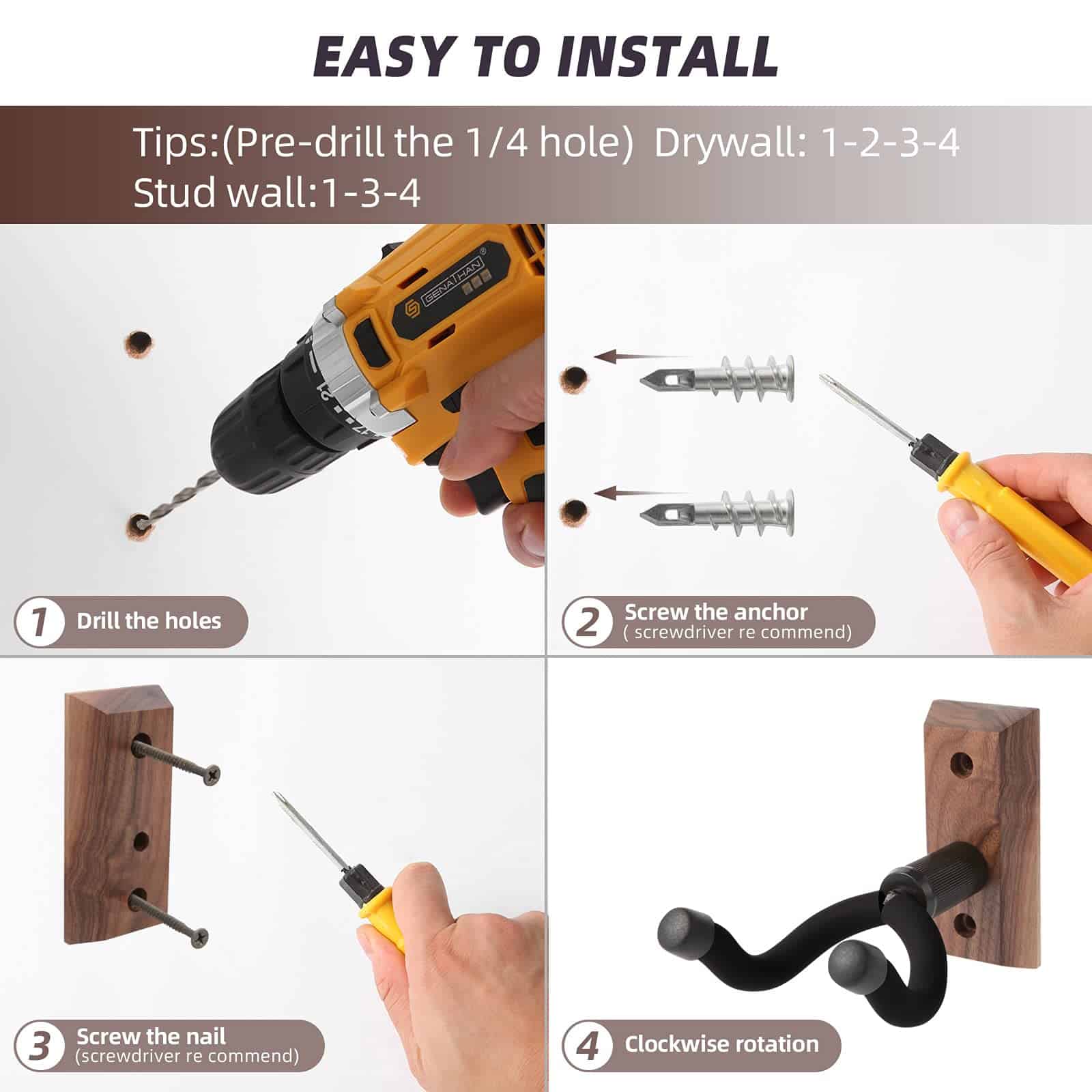 VEINTICO Soportes de Pared para Guitarra 4 Pack, Ganchos