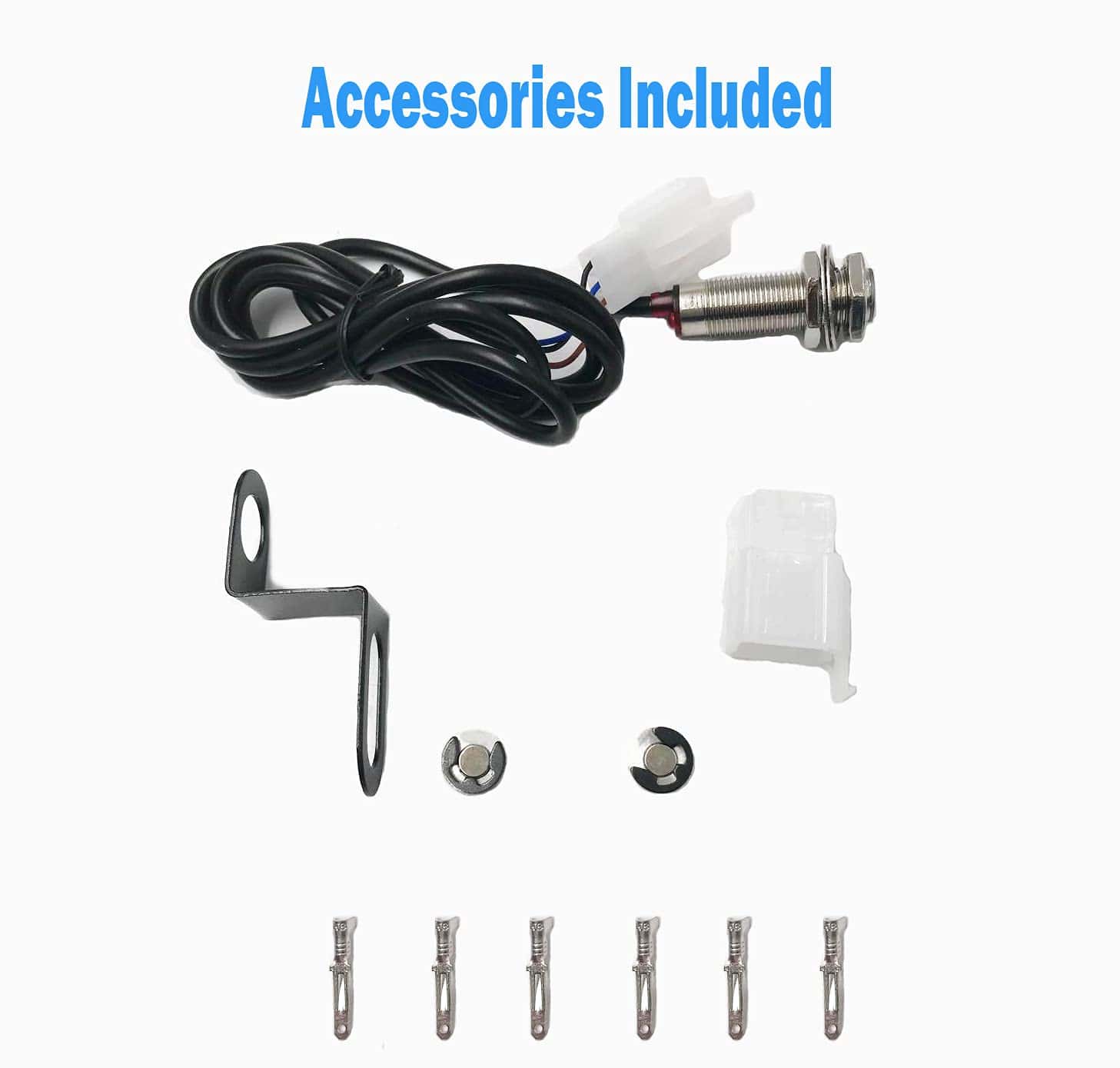 Párametros del producto: 1. Temperatura de trabajo: -20 – +70; 2. Temperatura de almacenamiento: -30 – +80; 3. Voltaje de trabajo: 8-18V; 4. Tamaño del producto: 9.5 x 9.5 x 7 cm. Descripción: Pantalla anti-reflejos real a color grande (visibilidad de 360 grados); Color de luz de fondo: Azul; Velocidad de visualización digital, rango de velocidad 0-299km/h; Indicador de aguja de rpm, rango 0-12000; Distancia de odómetro digital, rango de distancia 0-99999.9km; Funciones de indicador: señal de giro izquierda, luz alta, luces de giro derecha, luces de posición, luces de advertencia; Pantalla de posición de marcha LCD 1-6; Función de alarma: Alarma de bajo aceite, alarma de baja tensión; Botón para cambiar el subtotal de la distancia; Panel de luz utilizado como tablero de automóvil; Sistema de procesamiento de señal digital con tecnología chip en la mayoría de los componentes. Incluye: 1 x Velocímetro digital de motocicleta a color real, 1 x Cable del sensor, 2 x Placa magnética, 1 x Diagrama de cables e instrucciones, 1 x Soporte de velocímetro, 1 x Soporte de sensor de velocidad.
