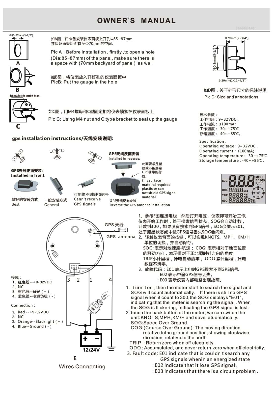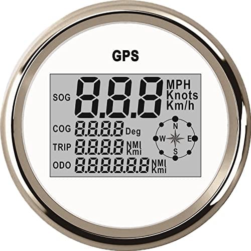 Características del Producto: – Apto para todos los vehículos, embarcaciones y vehículos todo terreno – La señal proviene directamente del receptor de señal de satélite (Sensor de Velocidad GPS) – El medidor tiene las ventajas de alta precisión, confirmación rápida de ubicación y corto tiempo de arranque. – Grado de impermeabilidad y a prueba de polvo IP67 – Motores paso a paso utilizados para una amplia gama de medidores de pasos, excelente característica con su menor consumo de energía, mayor vida útil, mayor precisión, etc. – Con vidrio curvado (con función antivaho) – Con diseño de amplio rango de voltaje de trabajo (voltaje de funcionamiento a largo plazo: 9-32V, máximo hasta: 36V (1 min)). Datos Técnicos: – Dimensión de fijación: 85mm (3-3/8″) – Rango Indicador: 0-999 (MPH, Nudos, KM/H ajustable) – Color de la Carcasa: Blanco con Acero Inoxidable. Si necesita Negro, por favor busque B074JB9PDD o B074JBPVZ7 – Voltaje de Trabajo: 9-32V (12V/24V) – Luz de Fondo: Rojo – Funciones: SOG — velocidad actual; COG — dirección en movimiento; TRIP — kilometraje para un viaje (se reinicia después de apagar la energía); ODO — kilometraje total acumulado (no se puede restablecer) – Conexión: Cable Azul – Negativo/Tierra, Cable Rojo – Positivo, Cable Naranja – Positivo (cable de iluminación) – Este Velocímetro GPS es una unidad completa, puede funcionar directamente con el sensor GPS juntos, no necesita otros cables de sensores. El sensor se puede montar en cualquier posición, en o debajo del tablero. – Después de la conexión, se tarda aproximadamente 30 segundos en obtener la señal la primera vez, pero menos de 3 segundos después de eso. Se vuelve más rápido bajo una vista clara del cielo. A veces, si falta la señal, por favor reconecte todos los cables y reinícielo. Modo de operación: Pantalla LCD, motor paso a paso Incluye: 1x Velocímetro GPS 1x Sensor de Velocidad GPS 1x Conector de Enchufe Múltiple 1x Instrucciones de Instalación