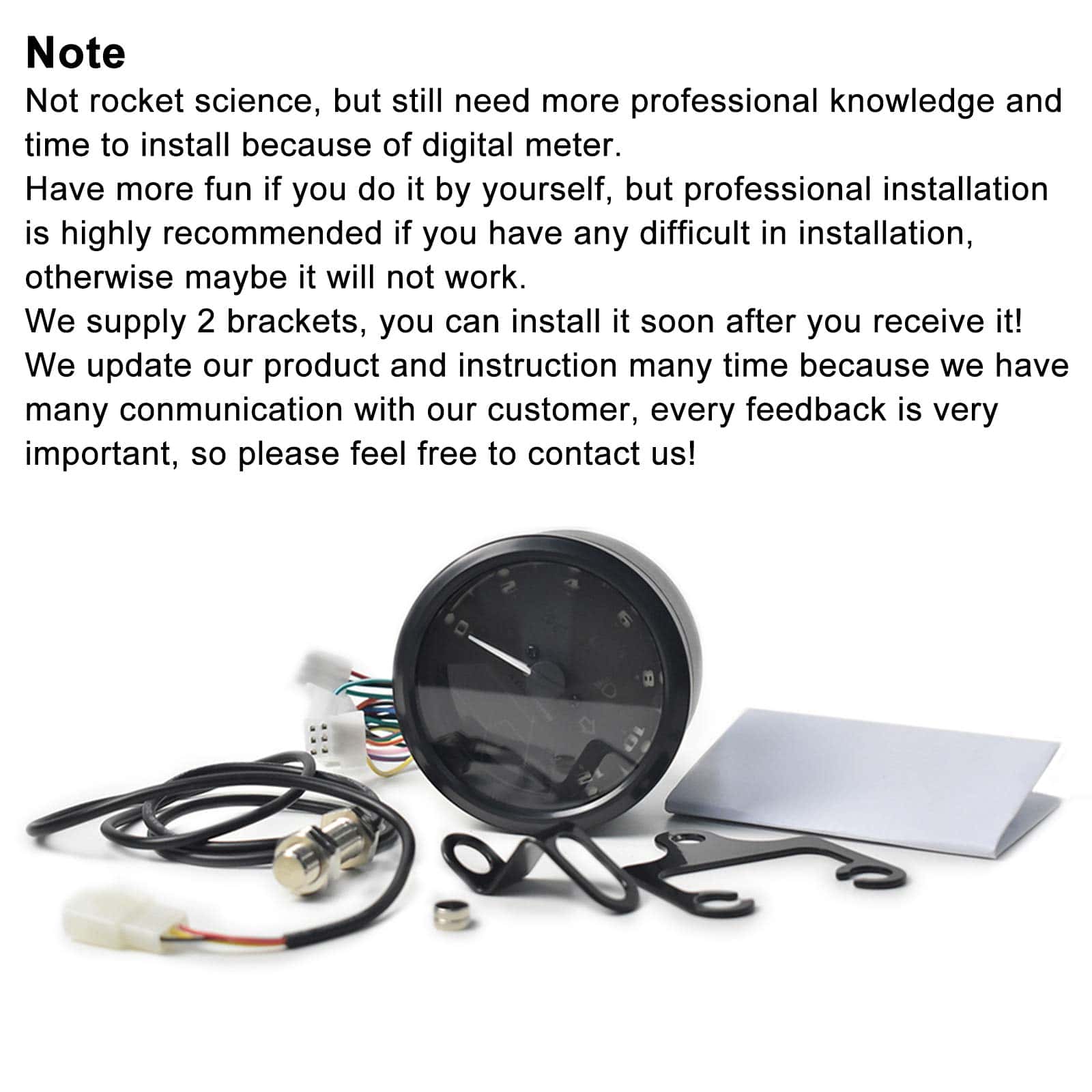 Velocímetro/Tacómetro/Cuentakilómetros digital multifuncional de alta calidad para motocicleta con carcasa de ABS, con pantalla LED con iluminación azul. Funciona con voltaje de trabajo de 8-18V y voltaje nominal de DC 12V. Se adapta a la mayoría de las motocicletas de 4 tiempos con 2/4 cilindros (ajustable a 1 cilindro por defecto). Por favor, confirme que este artículo es compatible con su vehículo antes de comprar. Si se usa con los puños de motocicleta B07WRWYNM6, se verá aún más genial.