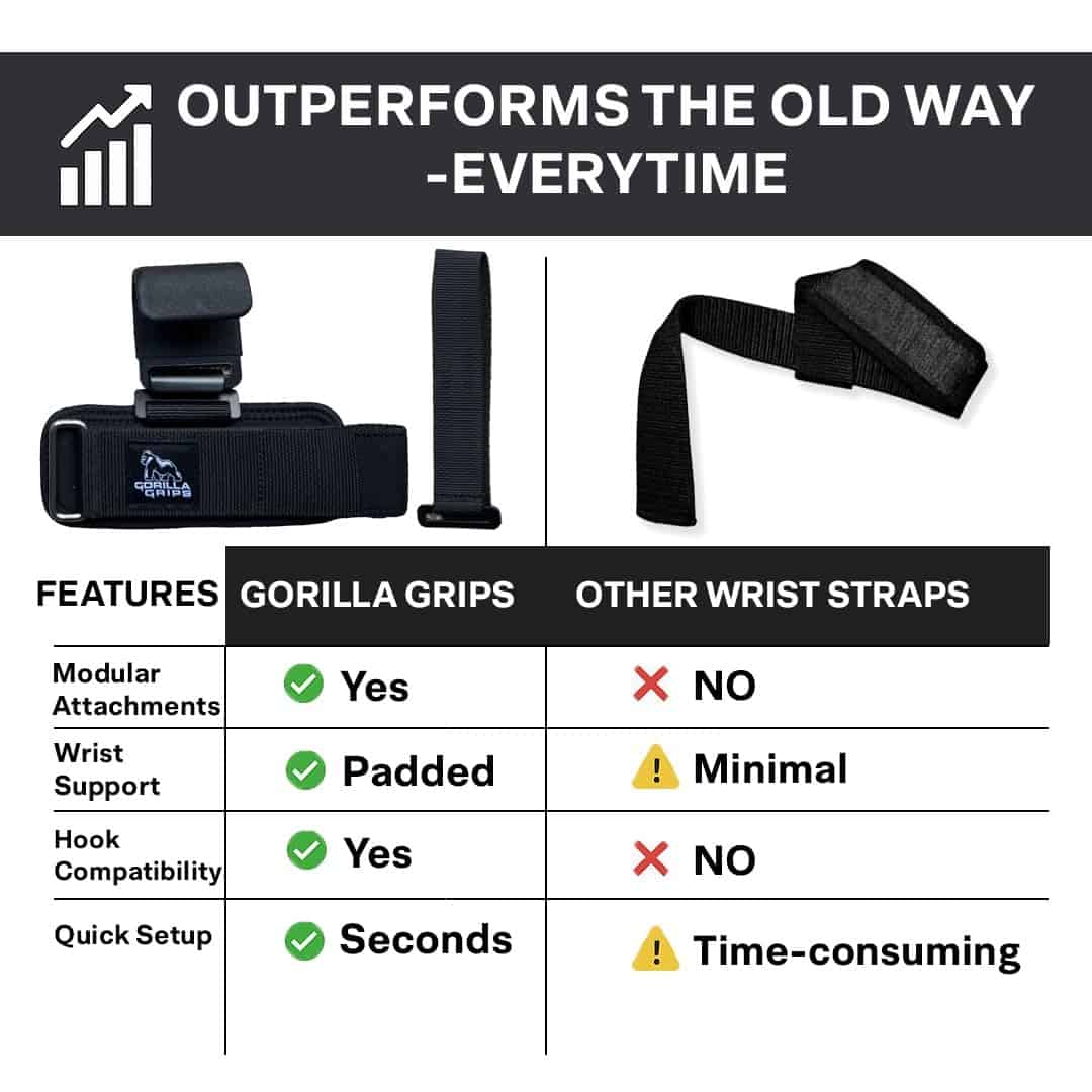 Desbloquea tu verdadero potencial de levantamiento con Gorilla Grips Wrist Wraps, la fusión definitiva de fuerza, soporte y versatilidad. Diseñadas tanto para hombres como para mujeres, estas vendas combinan lo mejor de las correas de levantamiento de pesas muertas, los agarres para dominadas y los accesorios modulares en un sistema poderoso. Diseñadas con ganchos integrados para levantamiento de pesas y correas de muñeca duraderas, Gorilla Grips están construidas para reducir la fatiga de la mano, mejorar el agarre y estabilizar tus muñecas durante los levantamientos pesados. Ya sea que estés aplastando levantamientos de pesas muertas, dominando dominadas, o superando una sesión de entrenamiento intensa, nuestro diseño modular te permite cambiar fácilmente los accesorios según tus necesidades de entrenamiento, brindándote un rendimiento máximo con mínimas molestias. Soporte resistente: Las vendas de muñeca reforzadas ofrecen una estabilidad y protección sin igual durante los levantamientos pesados. Fuerza de agarre mejorada: Los ganchos de levantamiento integrados y los agarres texturizados para dominadas te ayudan a sostener pesos más pesados por más tiempo. Flexibilidad modular: Las modificaciones rápidas hacen que Gorilla Grips sea adaptable para cualquier estilo de entrenamiento. Construido para todos: Perfecto para hombres y mujeres serios sobre el entrenamiento de fuerza, fisicoculturismo, CrossFit o fitness en general. Mejora tu entrenamiento con Gorilla Grips porque tu agarre nunca debería ser la razón por la que te quedas corto de tus objetivos.