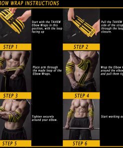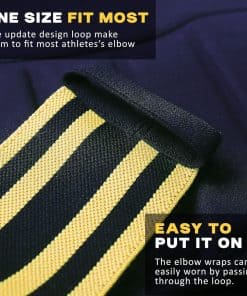 Vendas para Codos para Levantamiento de Pesas. Adecuadas para Strongman, Gimnasio, Entrenamiento de Crossfit, Levantamiento de Pesas, Powerlifting, Press de Banca, Fitness, Entrenamiento de Fuerza, Culturismo y cualquier ejercicio donde uses tus brazos! Con una longitud de 48, controlas la tensión envolviéndolos bien. Tejido elástico de alto rendimiento y estirable, fácilmente ajustable según las diferentes necesidades de compresión. Nuestras bandas para codos realmente marcarán la diferencia en tu entrenamiento. Las vendas para codos pueden aumentar tu fuerza en la parte superior del cuerpo durante el press de banca, press de hombros u cualquier otro ejercicio de empuje. Sentirás instantáneamente la diferencia una vez ajustadas firmemente. Las bandas para codos reducen el estrés y las fuerzas de tracción en tus tríceps protegiendo así tus codos durante levantamientos pesados. Las vendas para codos permiten levantar más peso y proteger tus codos logrando resultados más pesados, seguros y rápidos!
