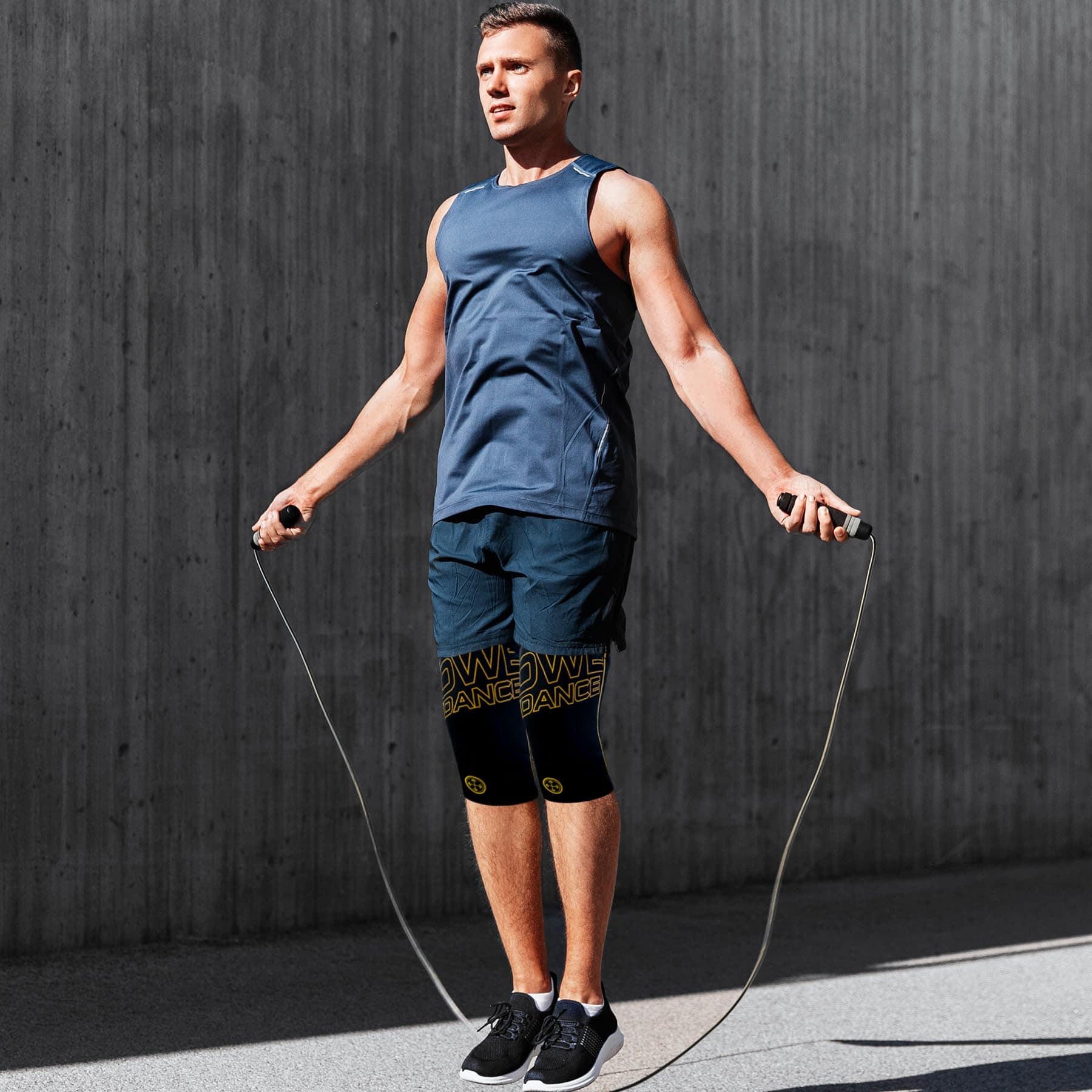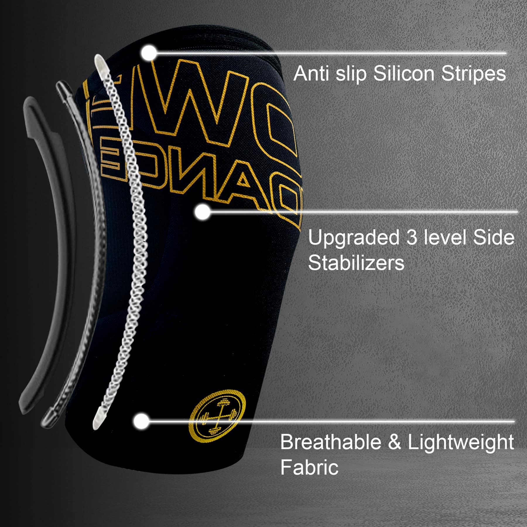 4. Doble tiras de caucho de silicona antideslizantes y tela transpirable: Los lados internos del soporte para rodilla están equipados con tiras de caucho de silicona antideslizantes de doble capa, que pueden fijarse en su lugar para evitar deslizamientos durante el ejercicio, mantener la estabilidad y proporcionar refuerzo adicional. Diseñado y fabricado con materiales elásticos delgados y ligeros duraderos y elásticos en cuatro dimensiones para proporcionar flexibilidad y transpirabilidad.