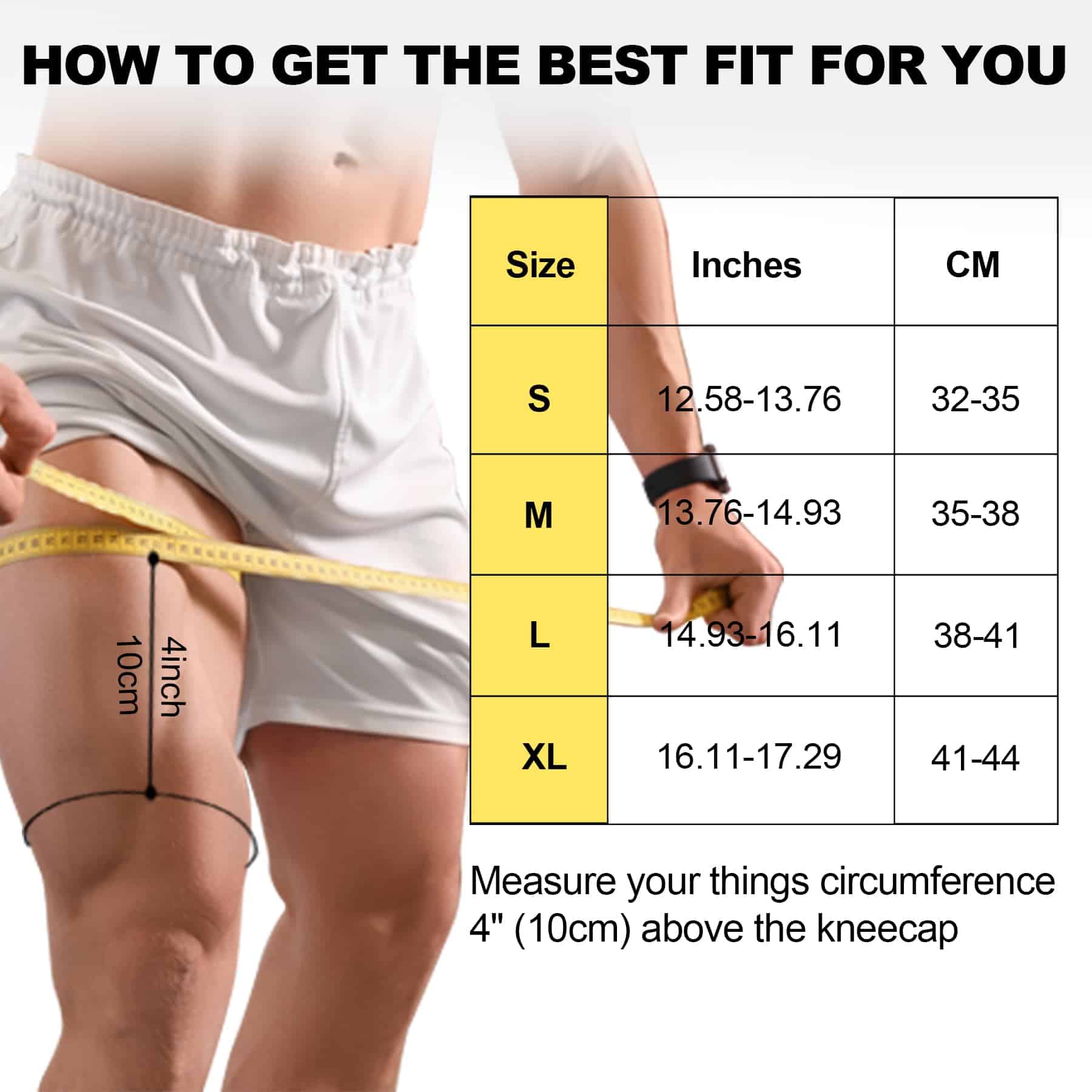 1. Nota: Por favor, revise la tabla de tallas en la imagen y mida la circunferencia de su pierna según las instrucciones para obtener la talla correcta, tenemos dos grosores para que elija, 2 pulgadas / 2.8 pulgadas. Material: 65% nylon, 20% látex y 15% spandex.