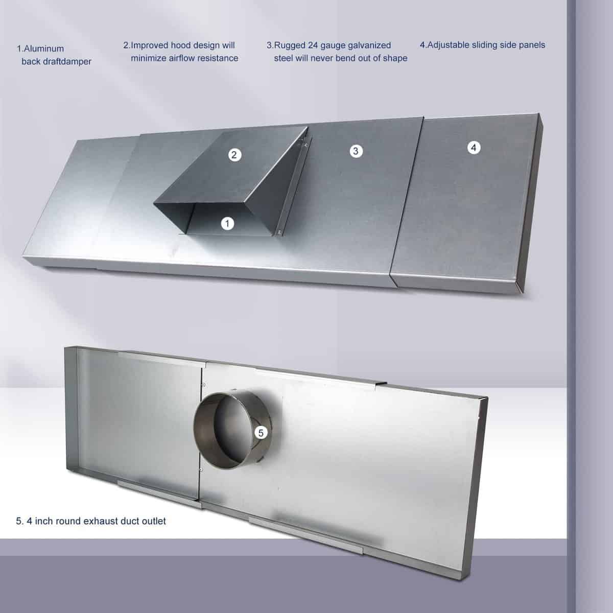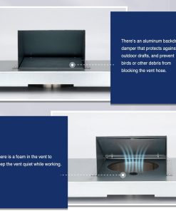 La ventana de ventilación para secadora de DITKOK está hecha con acero galvanizado calibre 24 y tiene un deflector de retorno de aluminio para evitar las corrientes de aire desde el exterior y también evitar que los pájaros aniden en la ventilación. Simplemente coloque la ventilación en la ventana abierta, deslice los paneles laterales para ajustarse a la apertura de la ventana (ventanas de 26″ a 36″), y cierre la ventana. Diseñamos esta ventilación con una campana agrandada para minimizar la resistencia al flujo de aire. No se preocupe, la cubierta de ventilación estándar de bajo perfil agrega una considerable resistencia al flujo de aire. Esta ventana de ventilación no es solo para las secadoras, también se puede usar en cabinas de pintura, grabadoras láser, ventiladores extractores y prácticamente cualquier otro dispositivo con un escape circular de 4″. Ofrecemos un año de garantía. Nota: Los rayones en la superficie son causados por la máquina de corte láser durante el proceso de corte, lo cual es inevitable, por favor comprenda.