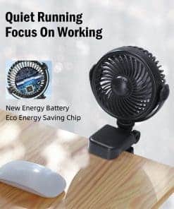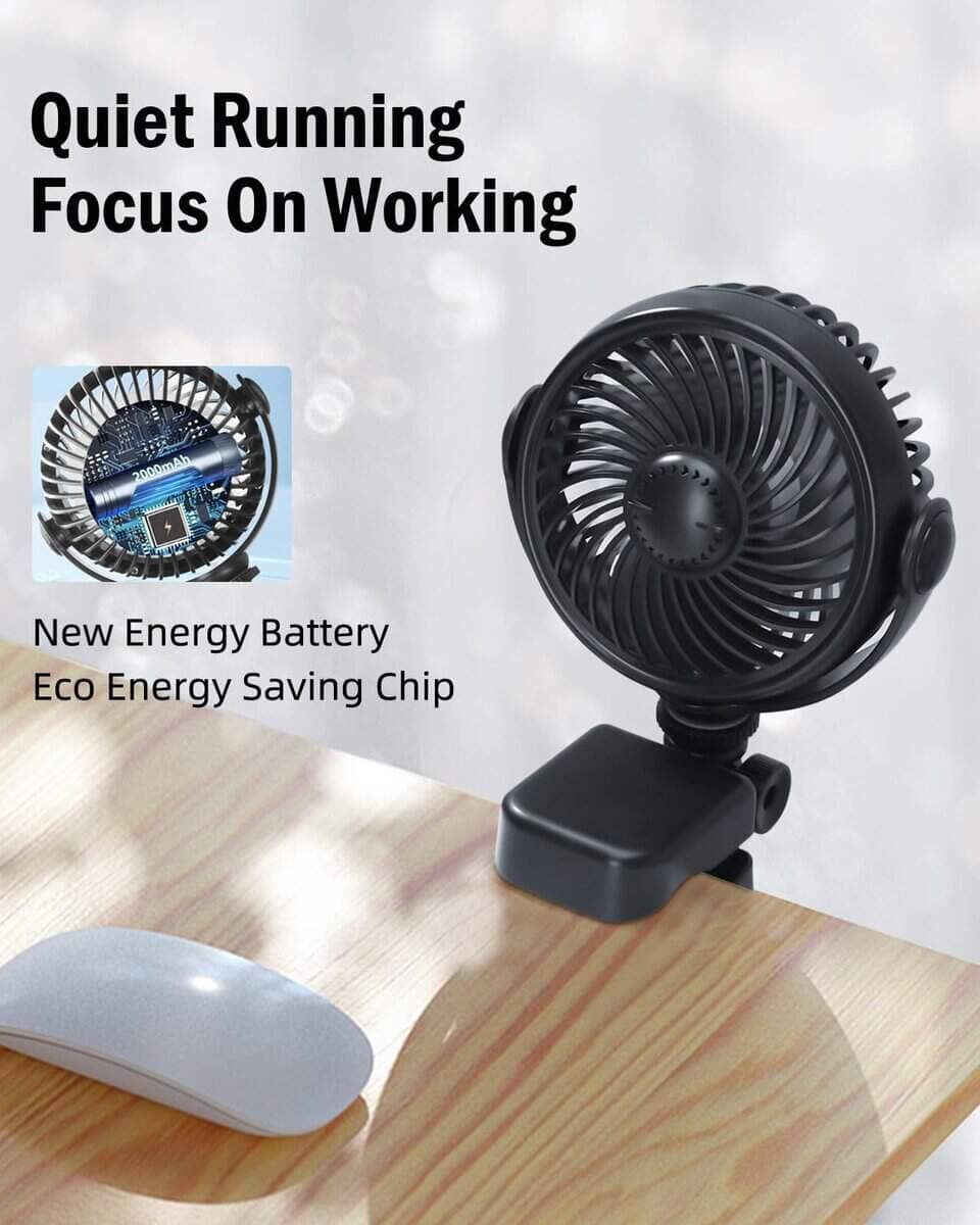 4. Batería de Nueva Energía: el ventilador clip-on xuenair recargable está alimentado por una batería de nueva energía, con capacidad de 2000mAh. ¡Uso inalámbrico, más ordenado, más seguro! Con el chip ECO de ahorro de energía, que hace que la vida útil de la batería de nuestro pequeño ventilador clip-on pueda durar más, alrededor de 2-8 horas (3 horas de carga completa). Viene con un cable de carga Tipo-C para montar o hacer ejercicio prolongados cuando la vida útil de la batería no puede satisfacer sus necesidades.