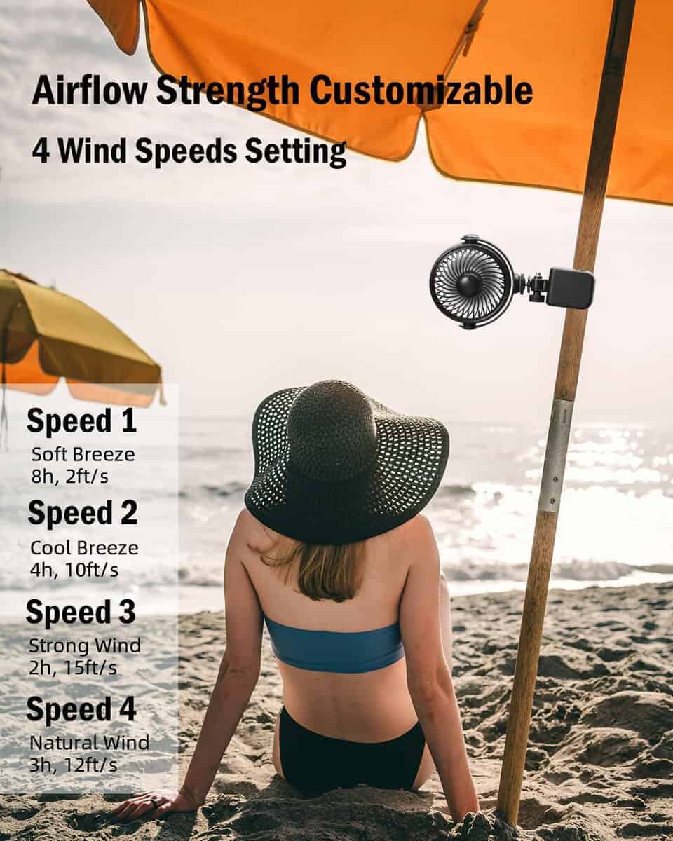 2. Cuatro Configuraciones de Velocidad del Viento: el ventilador clip-on xuenair tiene 4 velocidades de viento opcionales, ¡todos pueden tener un flujo de aire cómodo! Puede mantener un flujo de aire estable a su alrededor mientras monta o hace ejercicio. Cuando descanse, nuestro ventilador clip-on portátil para bicicleta puede ayudarlo a ajustar su temperatura corporal y recuperarse rápidamente. Diseño de botón de configuración única, no es necesario aprender, operación extremadamente simple y clara.