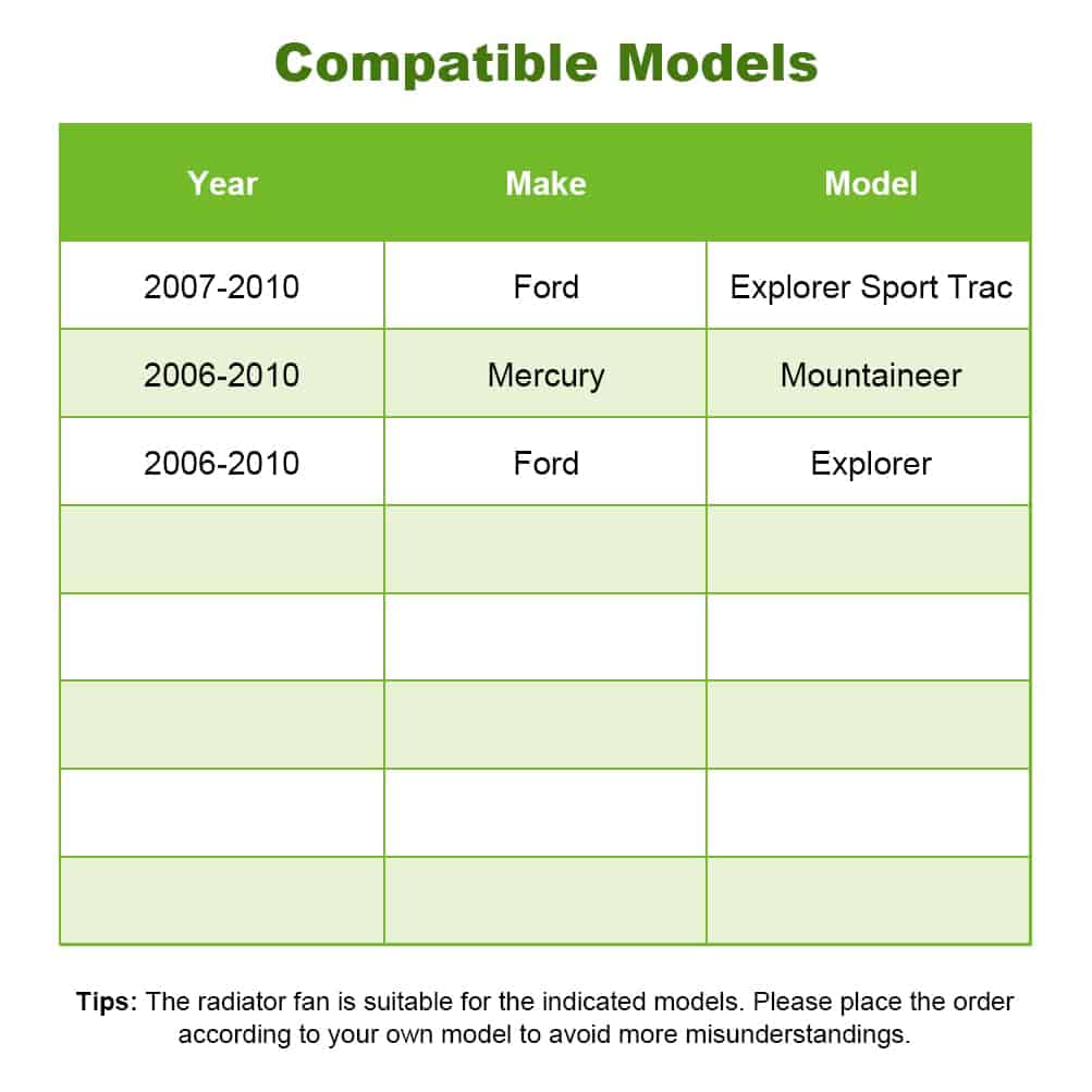 1. COMPATIBILIDAD – Ventilador de Embrague Compatible con 2006 2007 2008 2009 2010 para Ford Explorer 2007 2008 2009 2010 para Ford Explorer Sport Trac 2006-2010 Mercury Mountaineer.